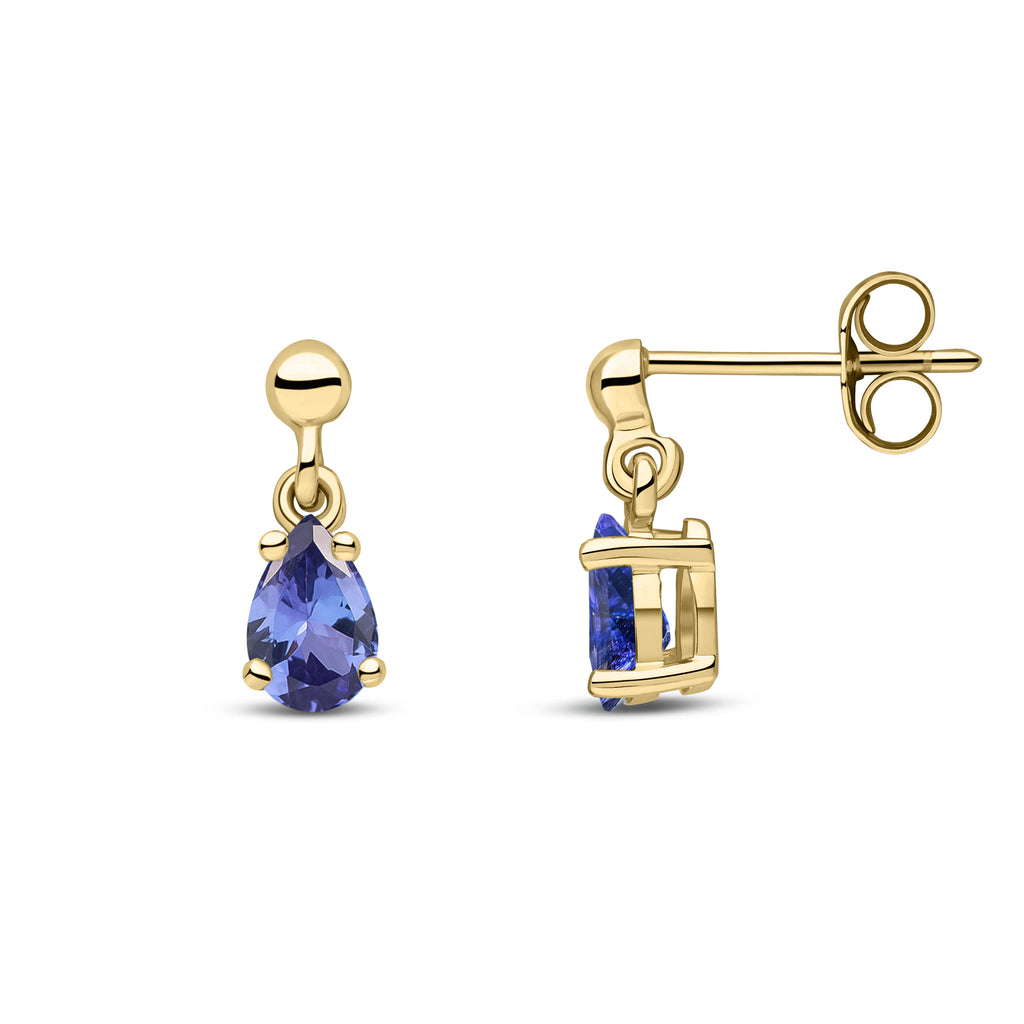 9CT Yellow Gold Pear Shaped Tanzanite Claw Drop Earrings 6x4mm