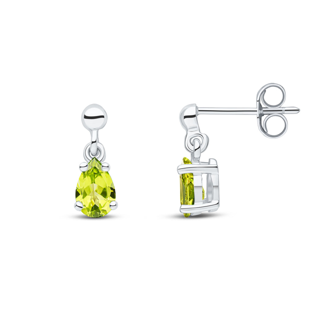 9CT White Gold Pear Shaped Peridot Claw Drop Earrings 6x4mm