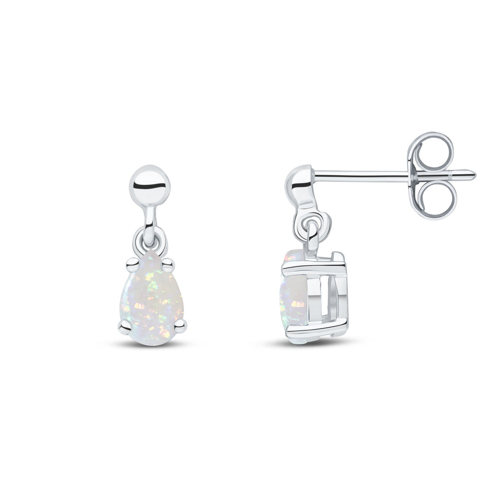 9CT White Gold Pear Shaped Opal Claw Drop Earrings 6x4mm