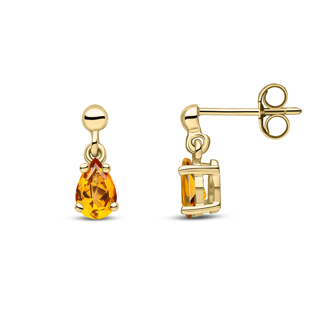 9CT Yellow Gold Pear Shaped Citrine Claw Drop Earrings 6x4mm