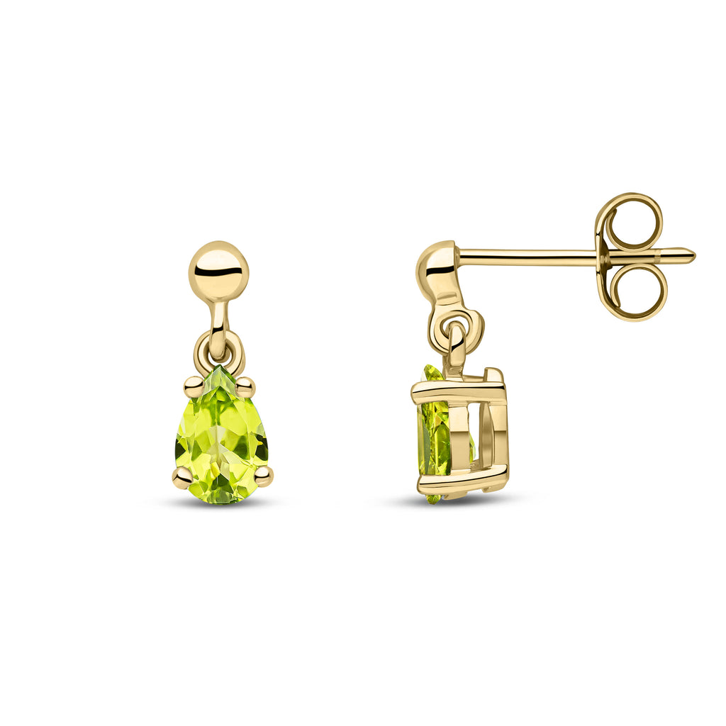 9CT Yellow Gold Pear Shaped Peridot Claw Drop Earrings 6x4mm