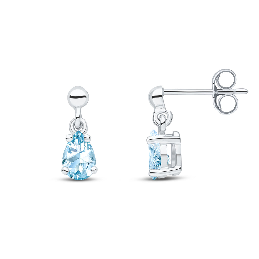 9CT White Gold Pear Shaped Aquamarine Claw Drop Earrings 6x4mm