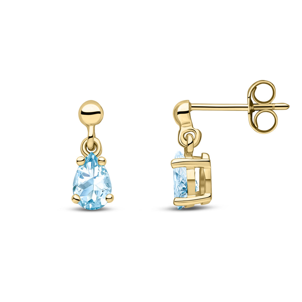 9CT Yellow Gold Pear Shaped Aquamarine Claw Drop Earrings 6x4mm
