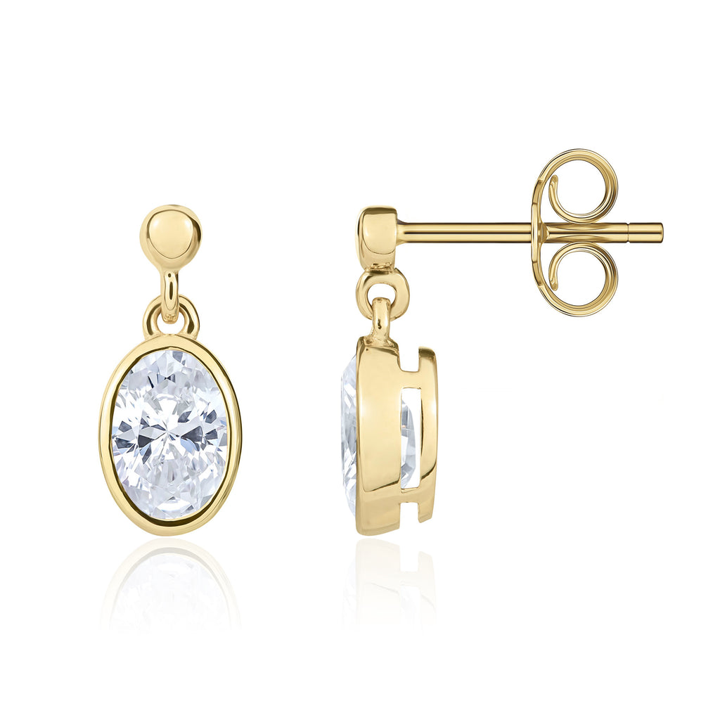 9CT Yellow Gold Oval Shaped Cubic Zirconia CZ Drop Earrings 7x5mm