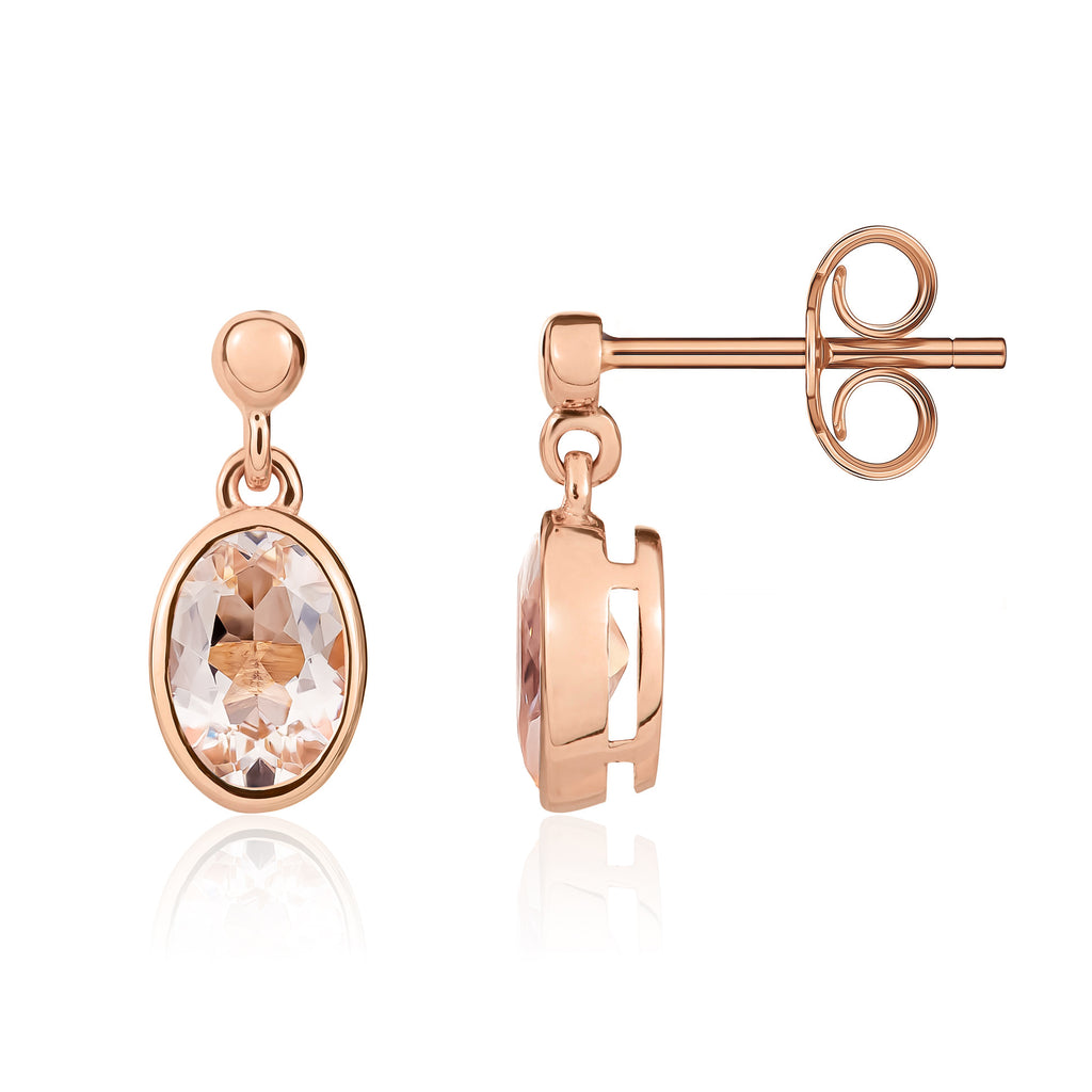 9CT Rose Gold Oval Morganite Drop Earrings 7x5mm