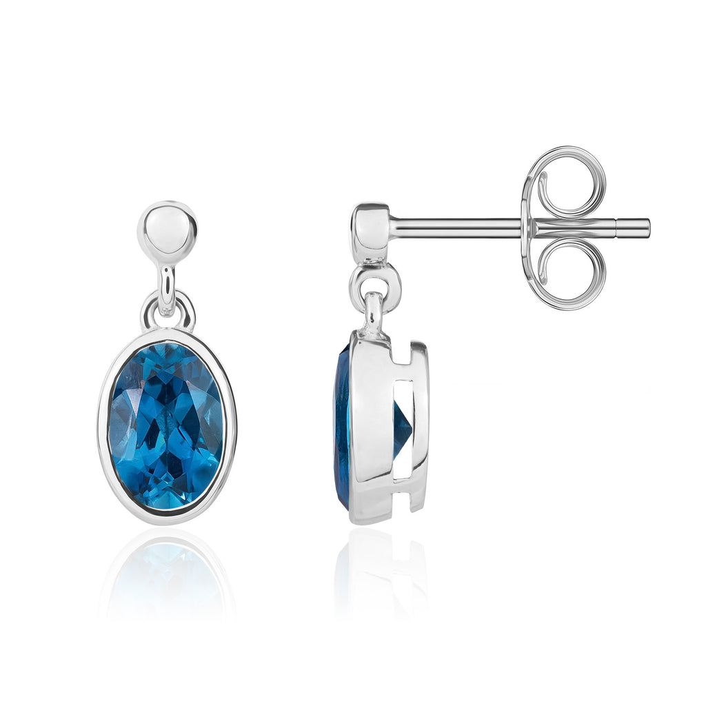 9CT White Gold Oval London Blue Topaz Drop Earrings 7x5mm