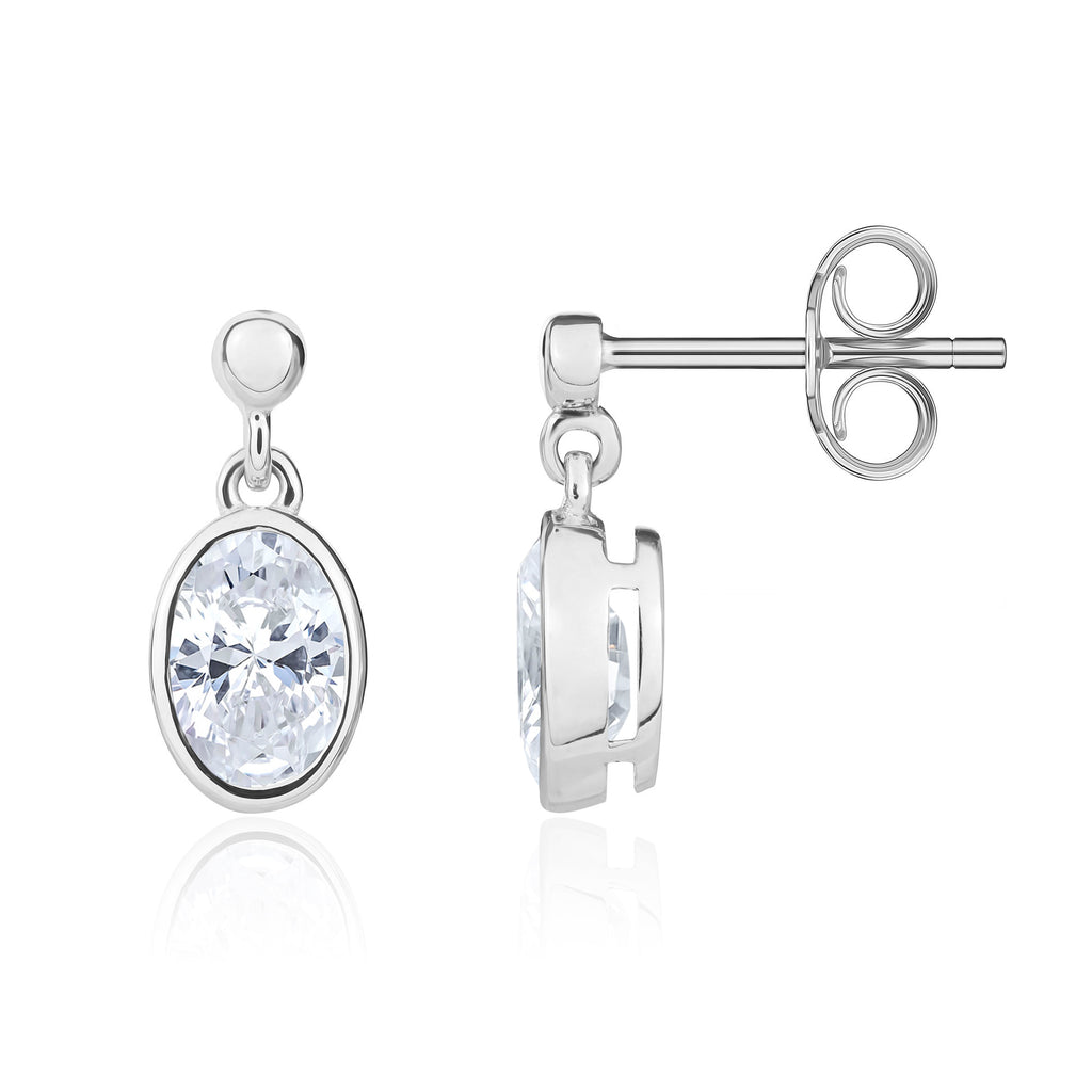 9CT White Gold Oval Shaped Cubic Zirconia CZ Drop Earrings 7x5mm