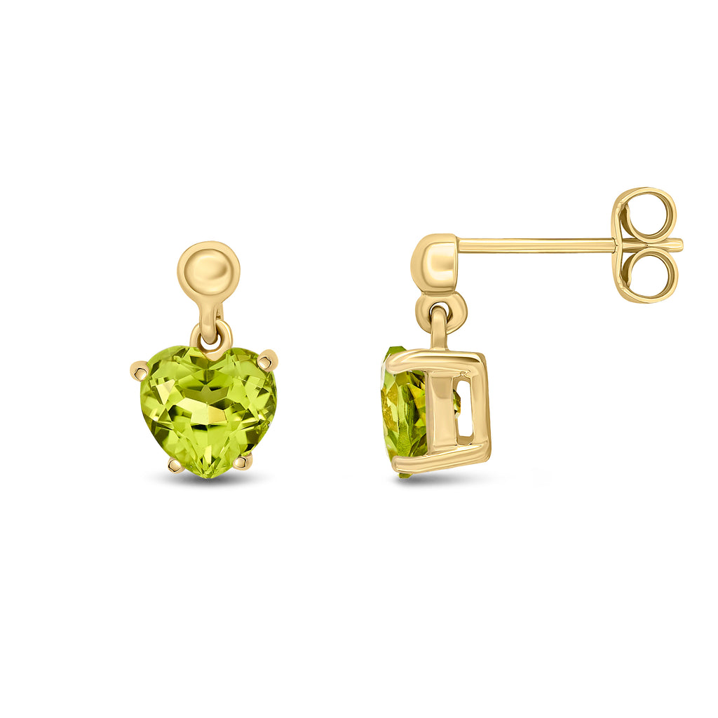 9CT Yellow Gold Heart Peridot Claw Drop Earrings 6mm