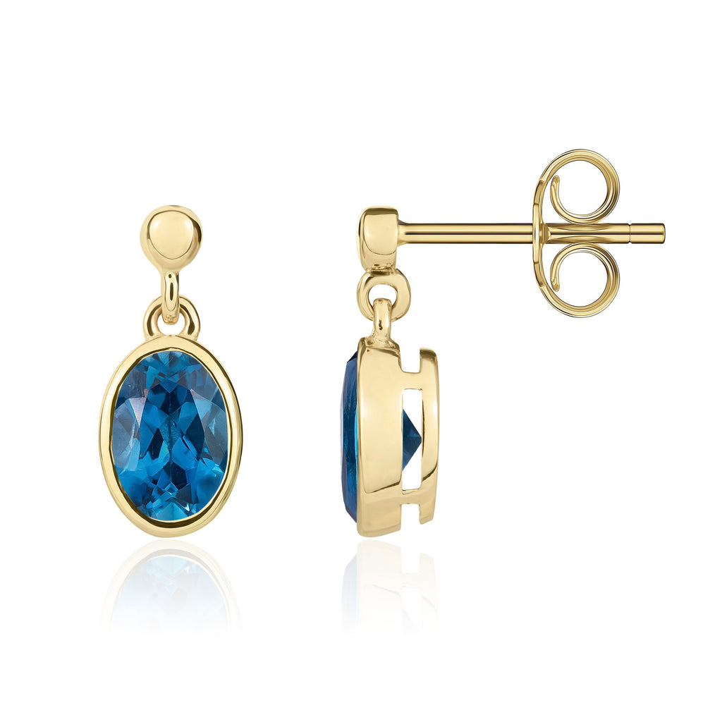 9CT Yellow Gold Oval London Blue Topaz Drop Earrings 7x5mm