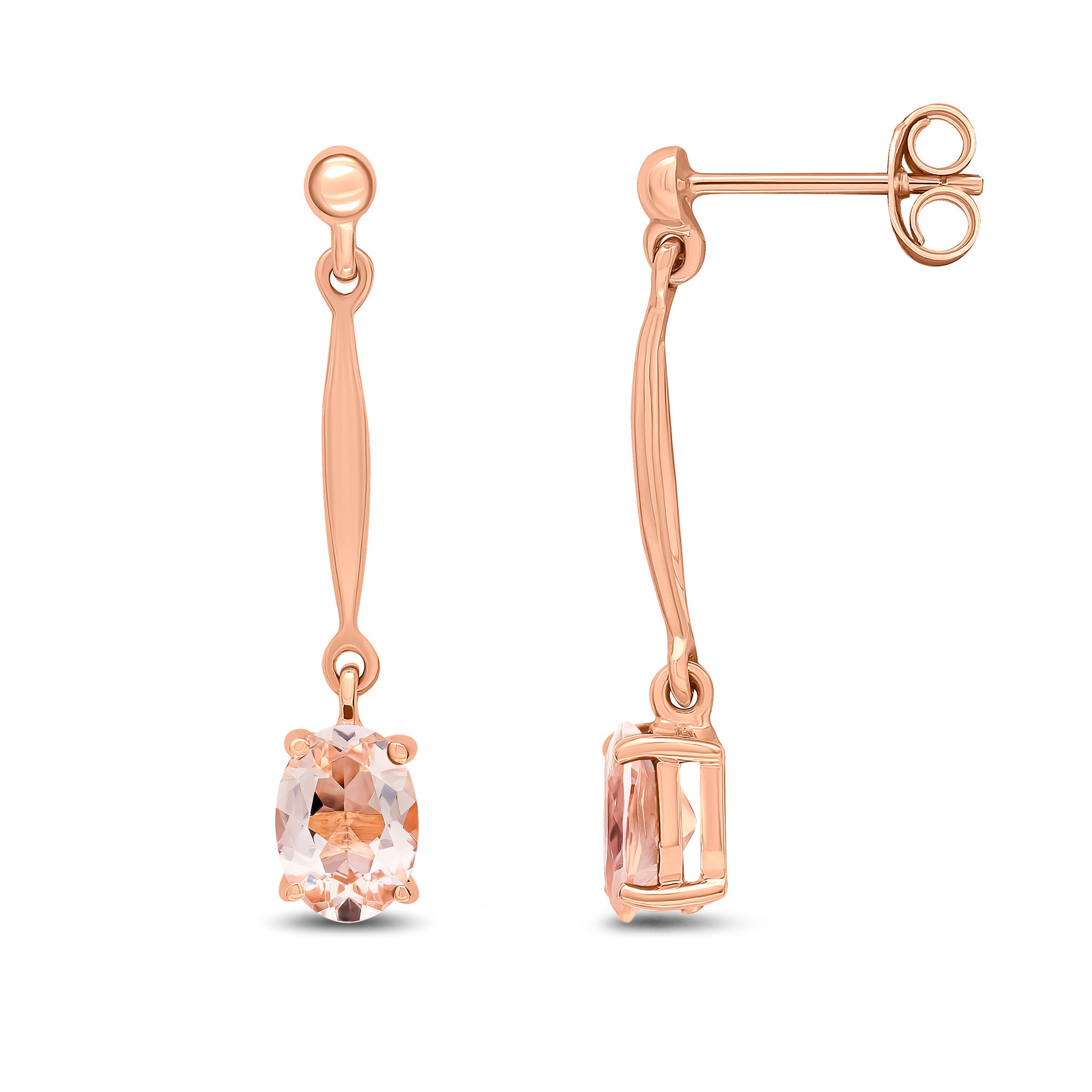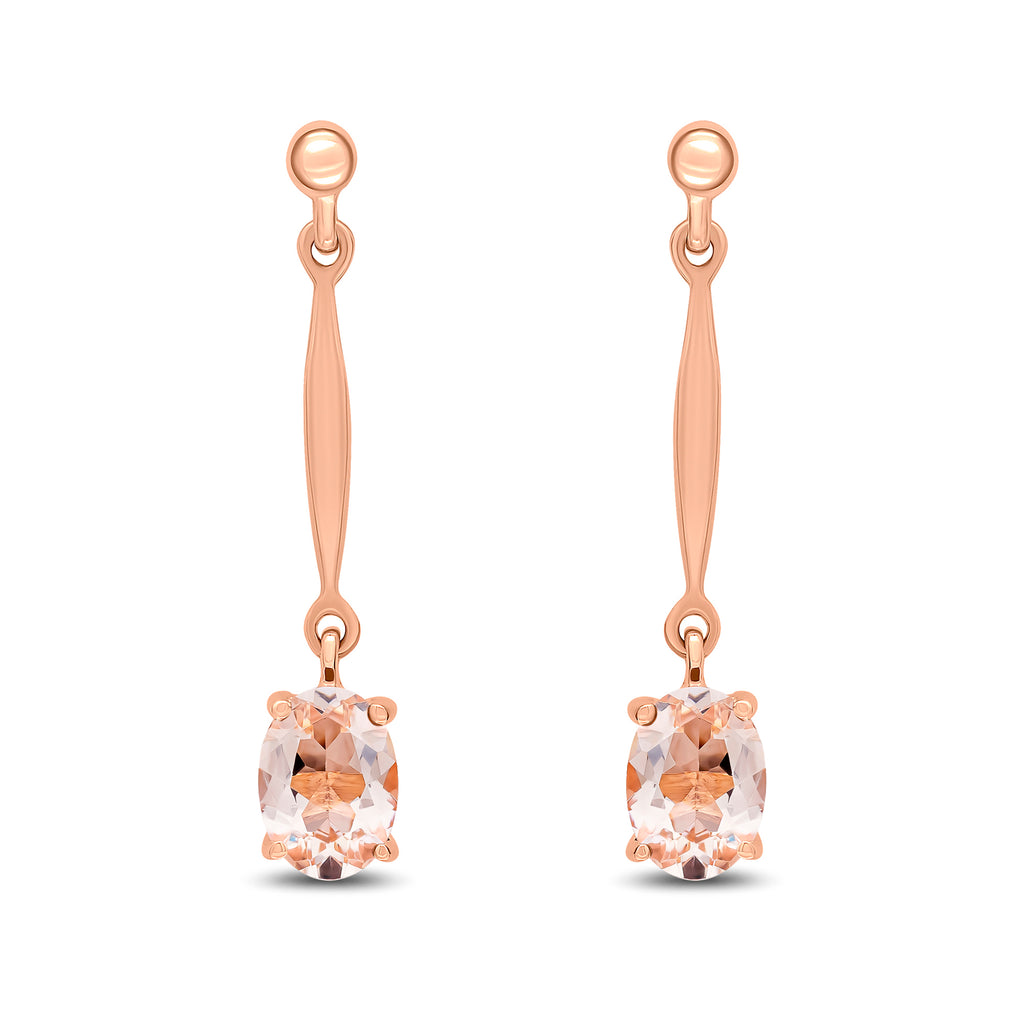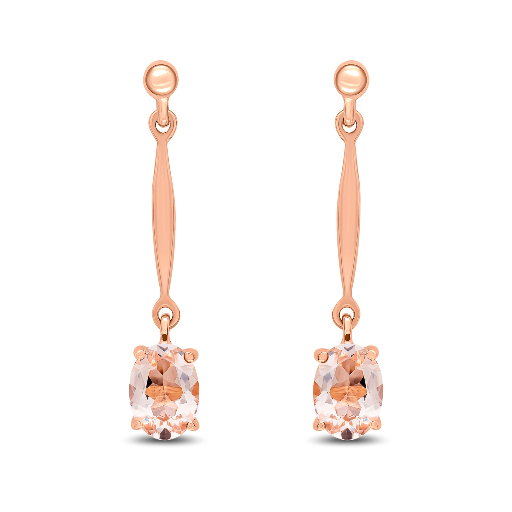 9CT Rose Gold Oval Morganite Claw Bar Drop Earrings 7x5mm