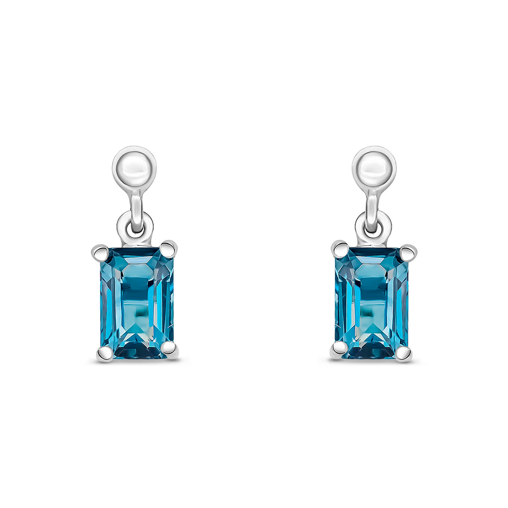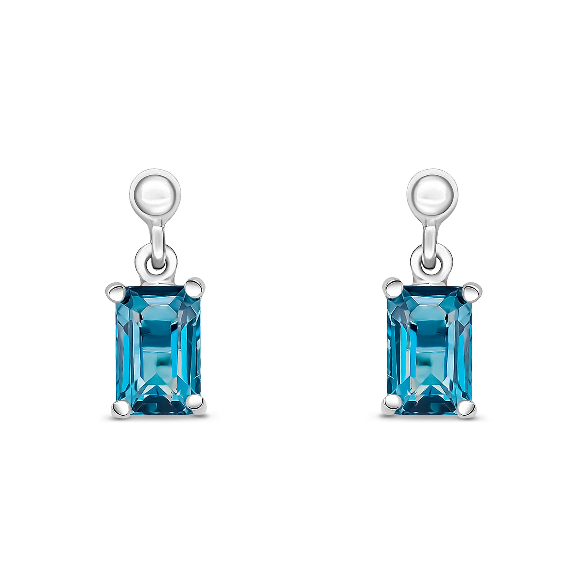 9CT White Gold Octagonal London Blue Topaz Claw Drop Earrings 6x4mm