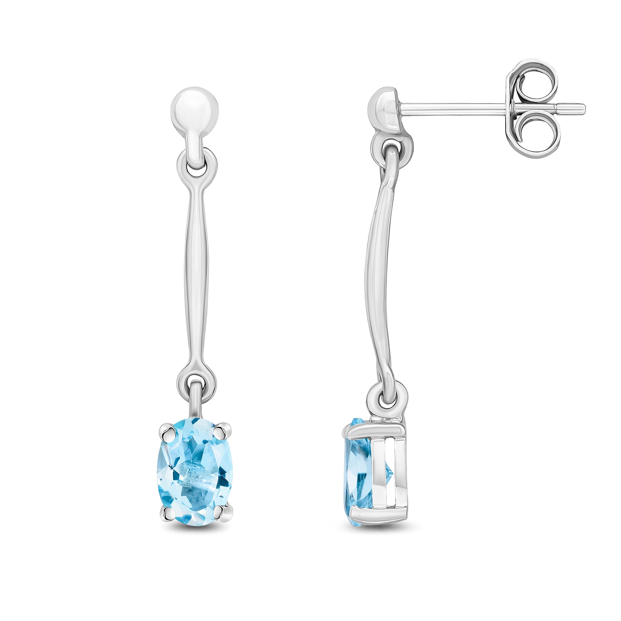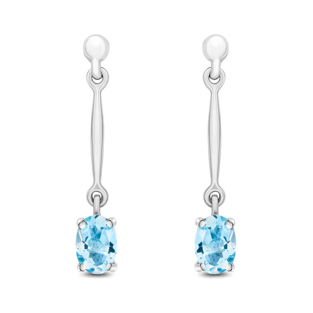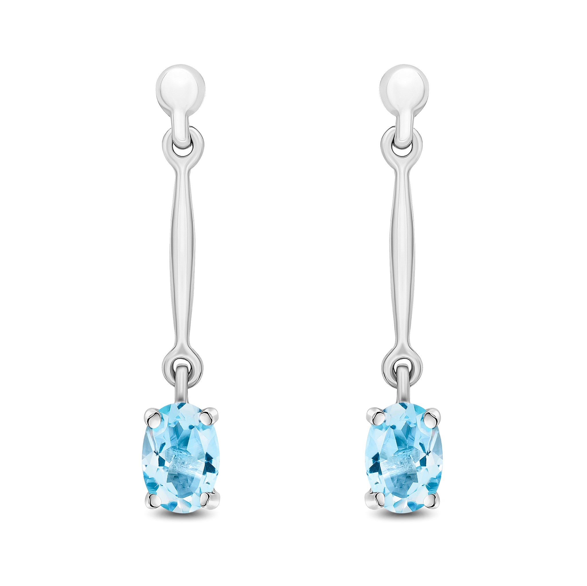 9CT White Gold Oval Aquamarine Claw Bar Drop Earrings 6x4mm