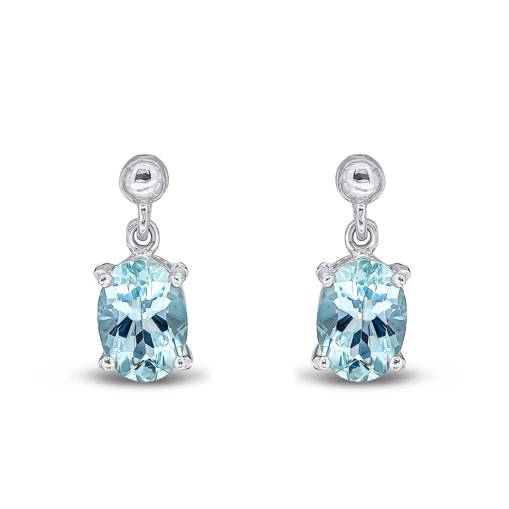 9CT White Gold Oval Aquamarine Claw Drop Earrings 7x5mm