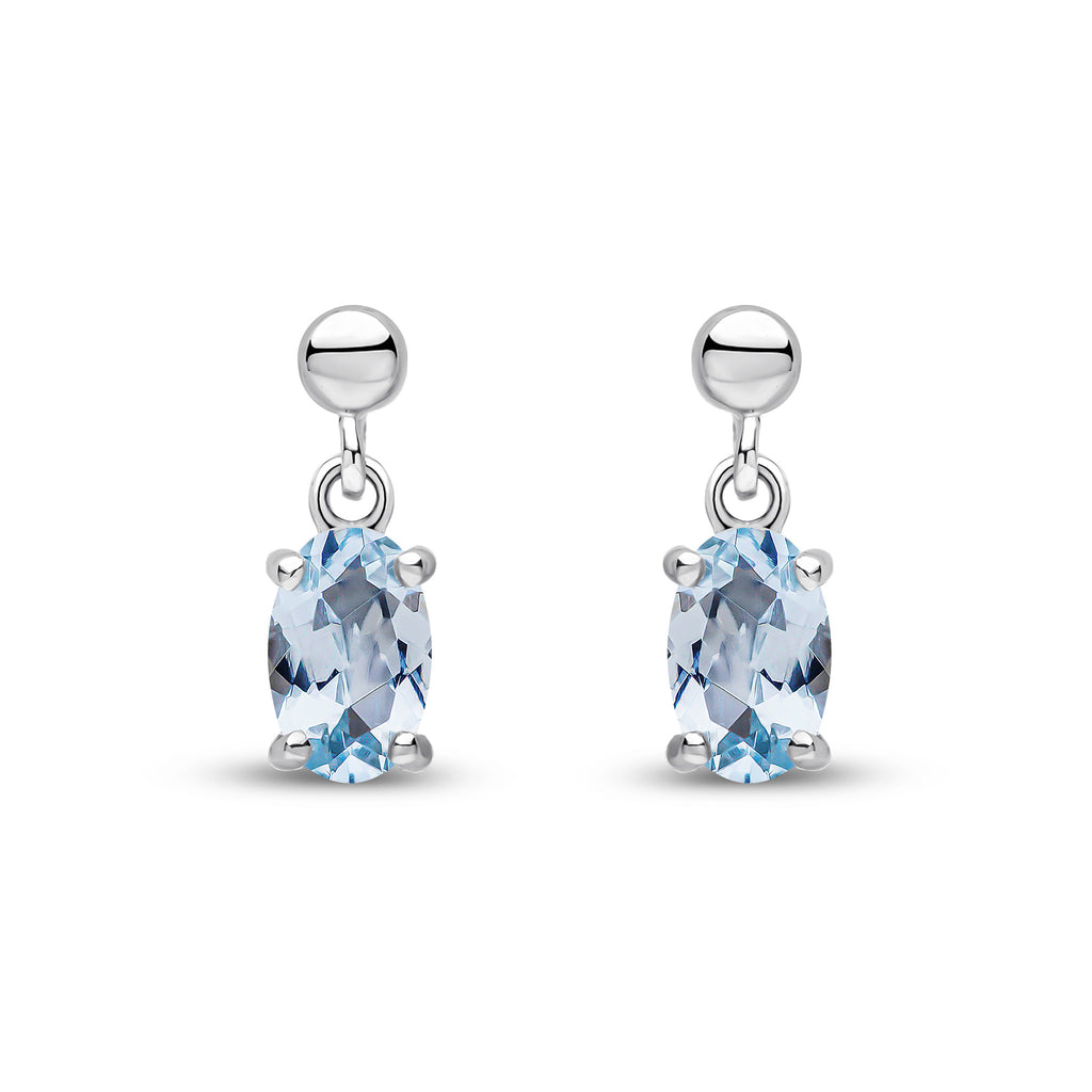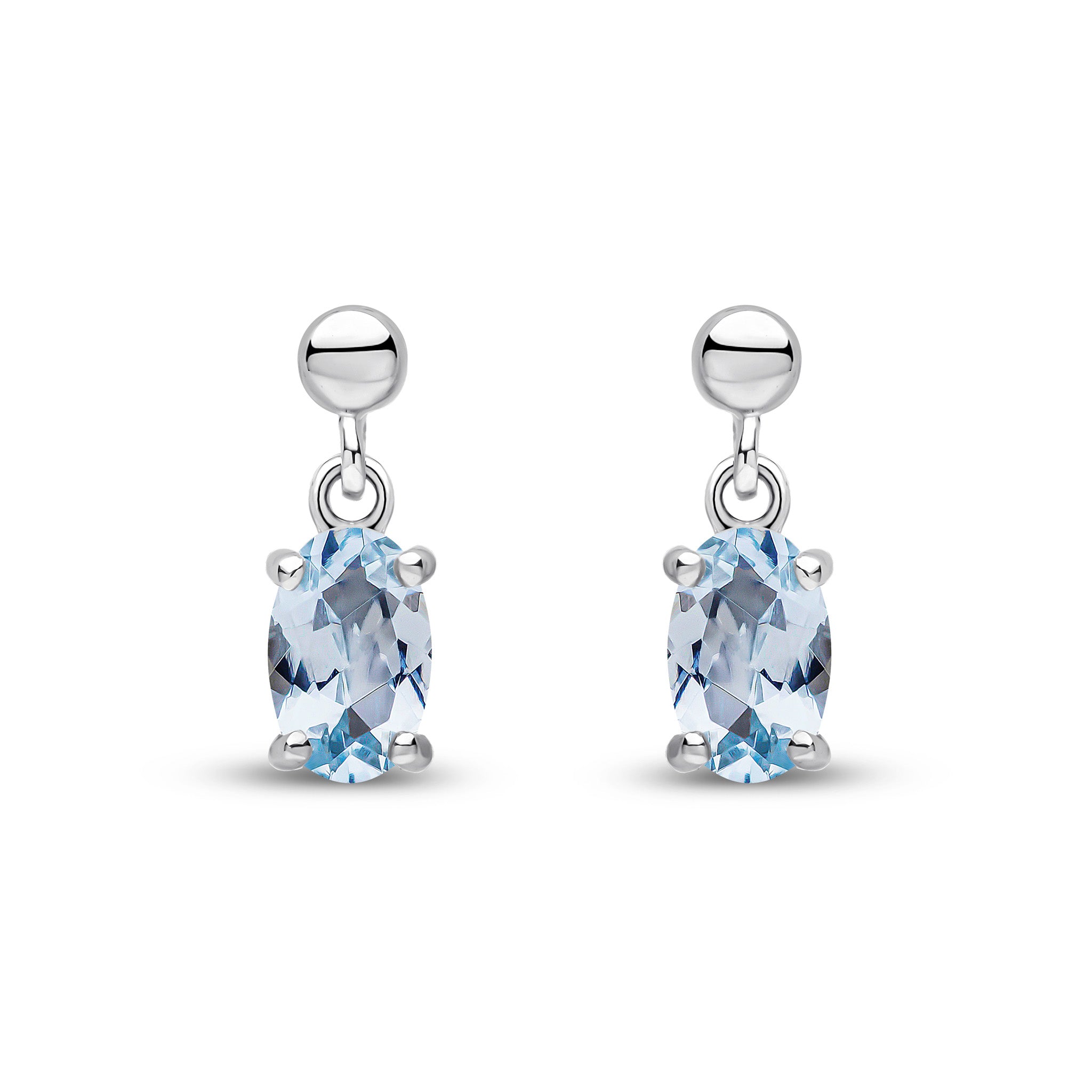 9CT White Gold Oval Aquamarine Drop Earrings 6x4mm