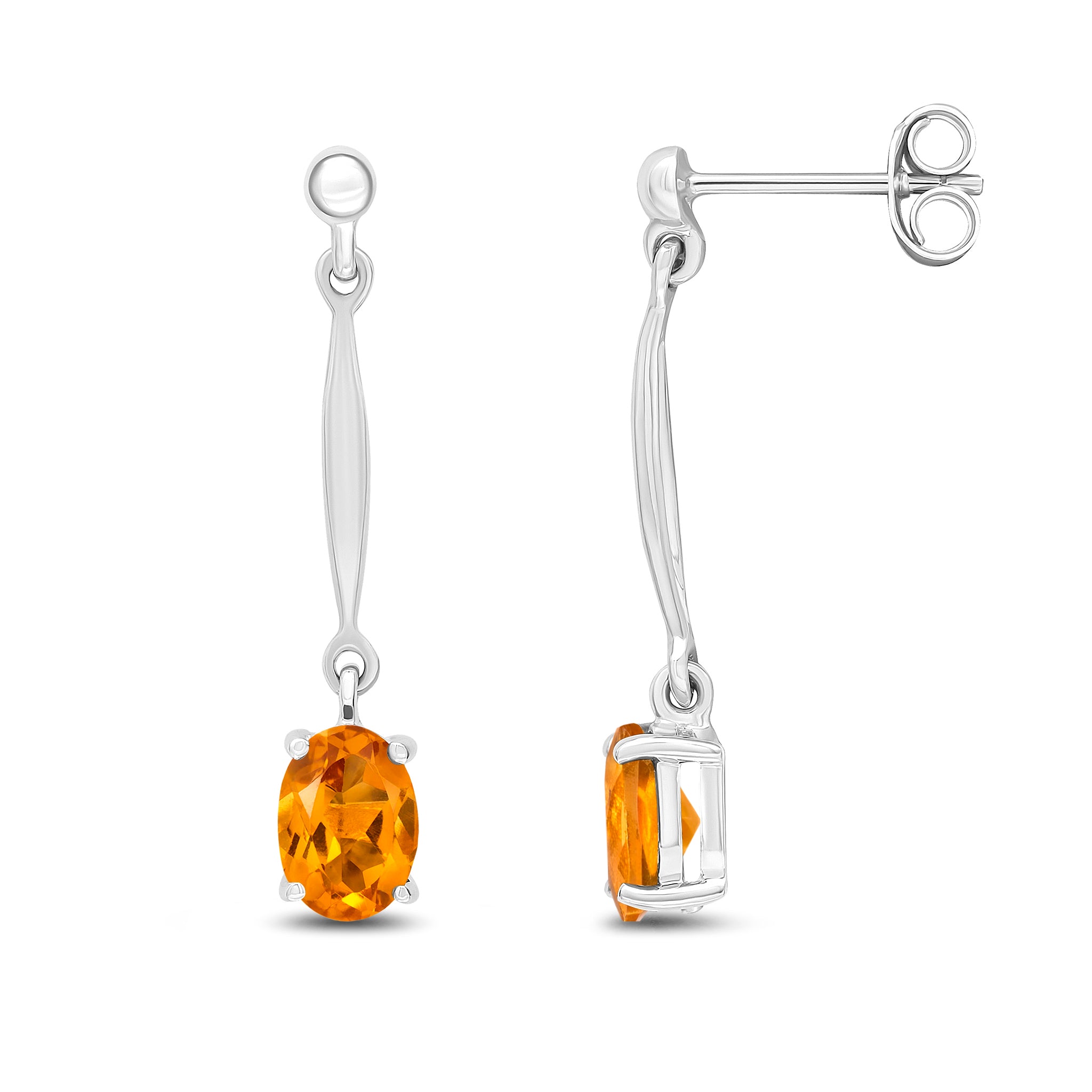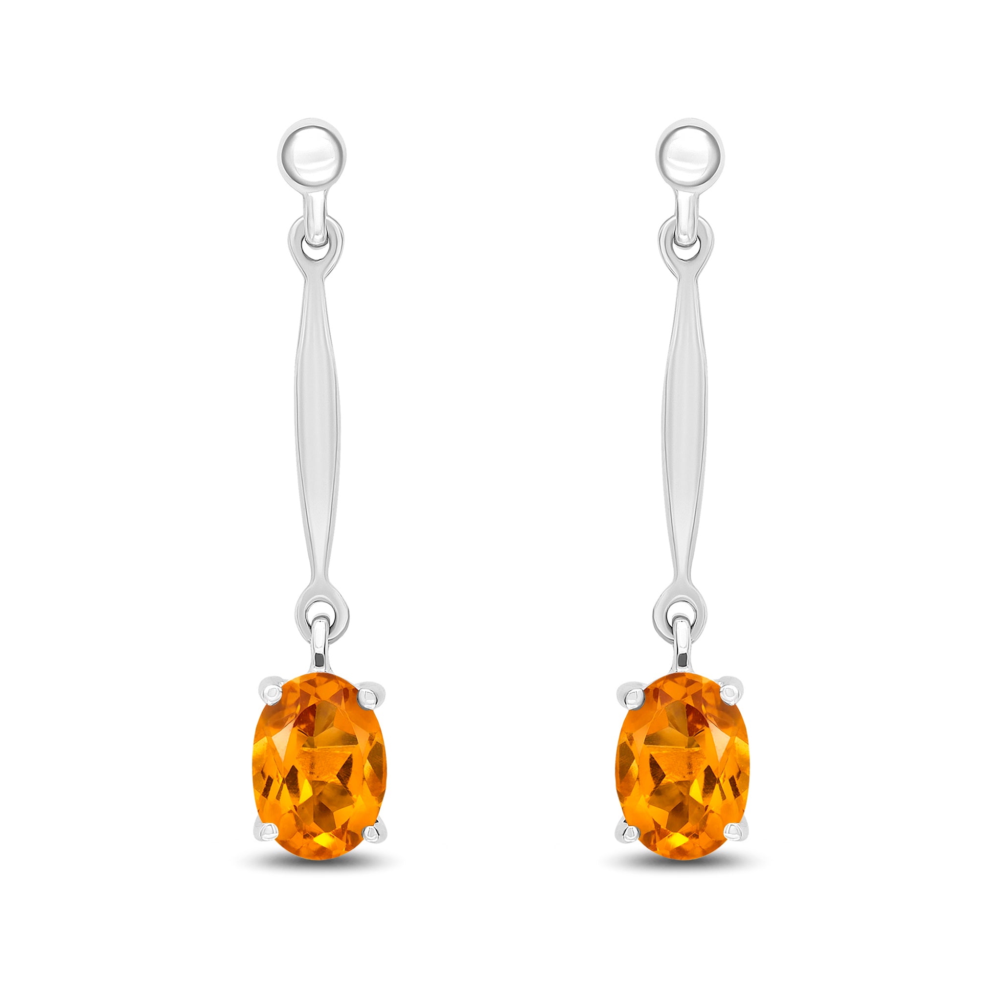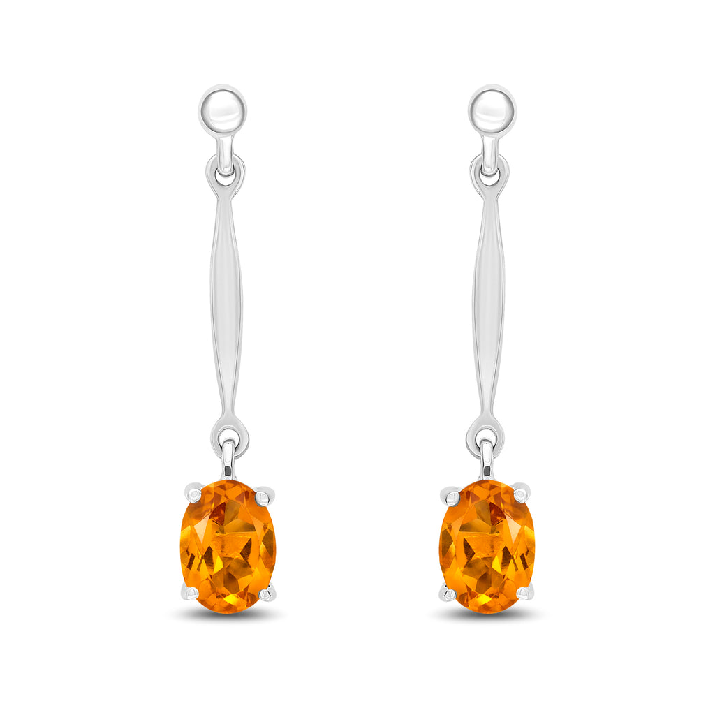 9CT White Gold Oval Citrine Claw Bar Drop Earrings 7x5mm