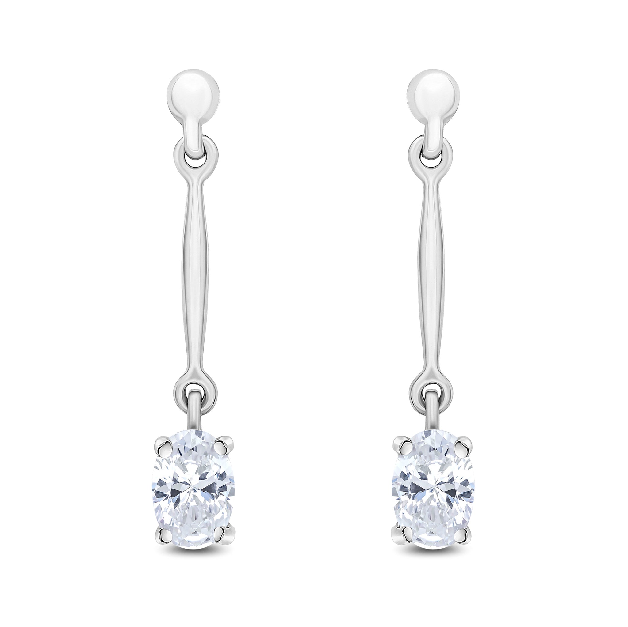 9CT White Gold Oval Cubic Zirconia CZ Bar Drop Earrings 6x4mm