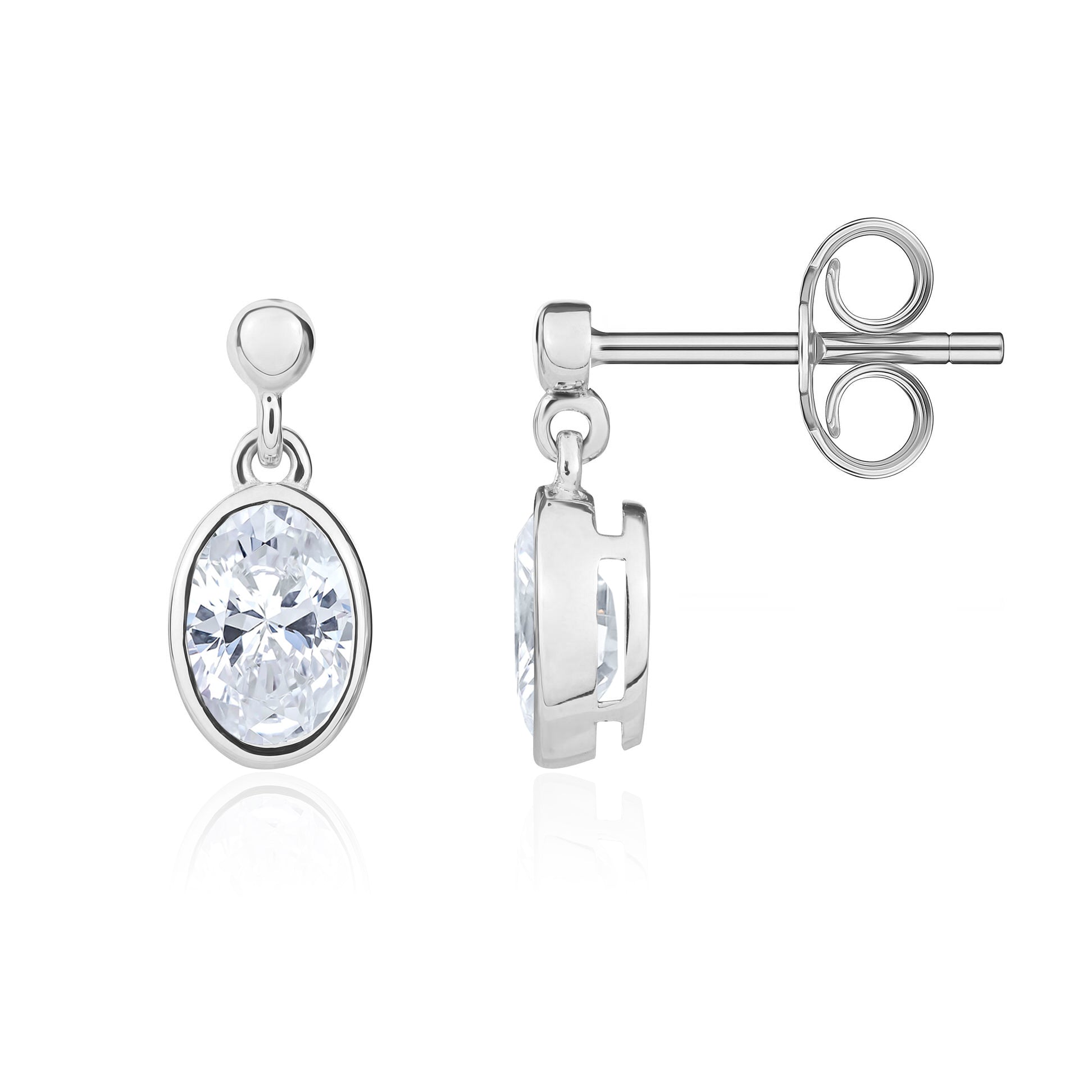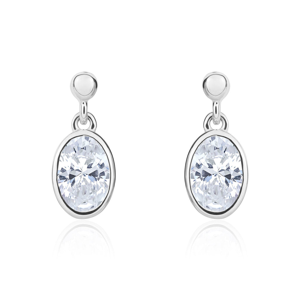 9CT White Gold Oval Cubic Zirconia CZ Drop Earrings 6x4mm