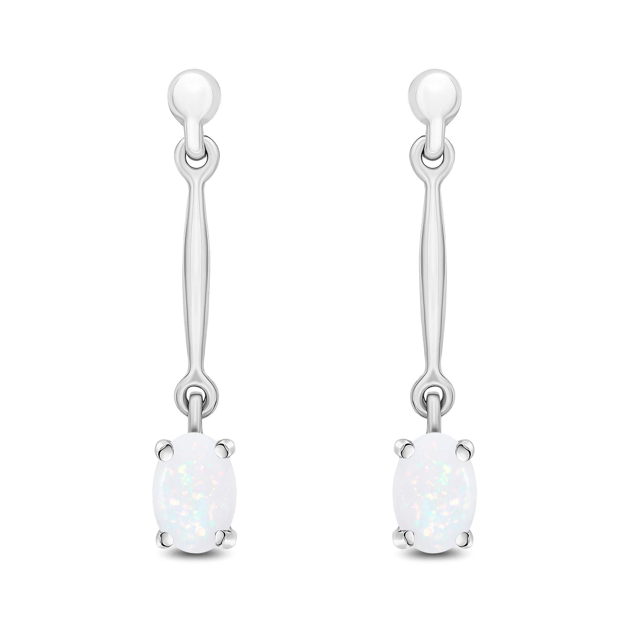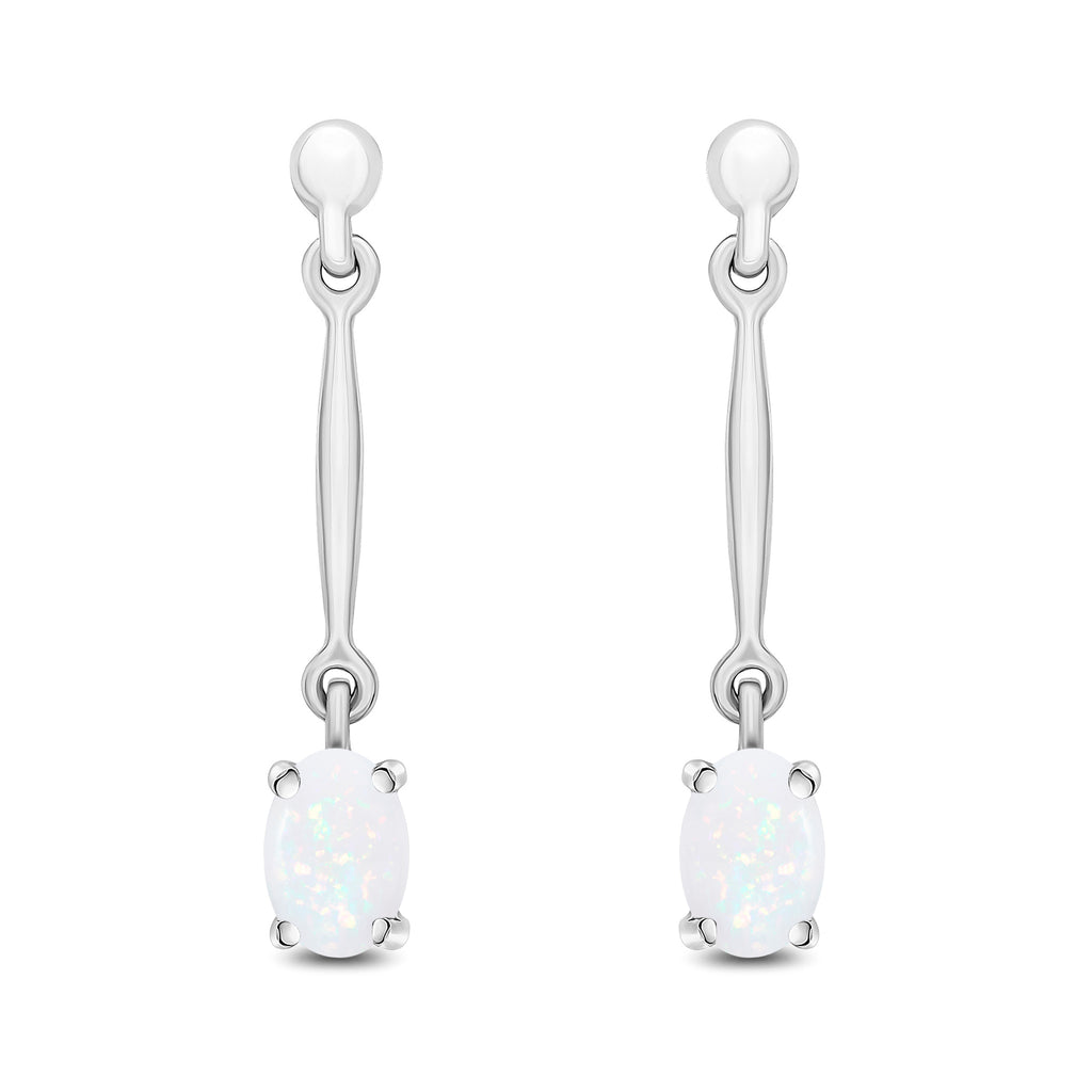 9CT White Gold Oval Opal Claw Bar Drop Earrings 6x4mm