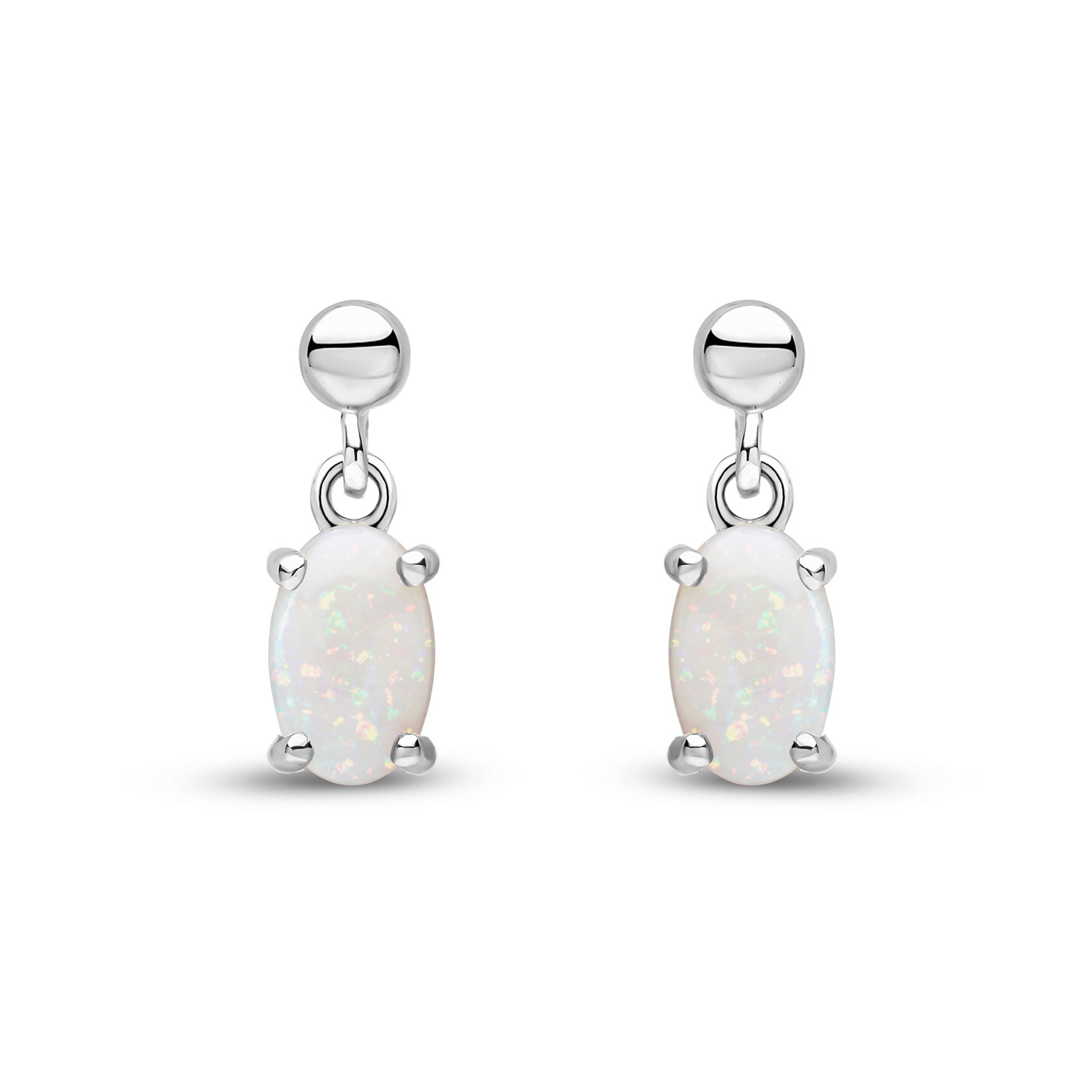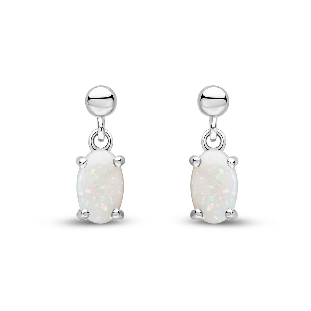 9CT White Gold Oval Opal Drop Earrings 6x4mm