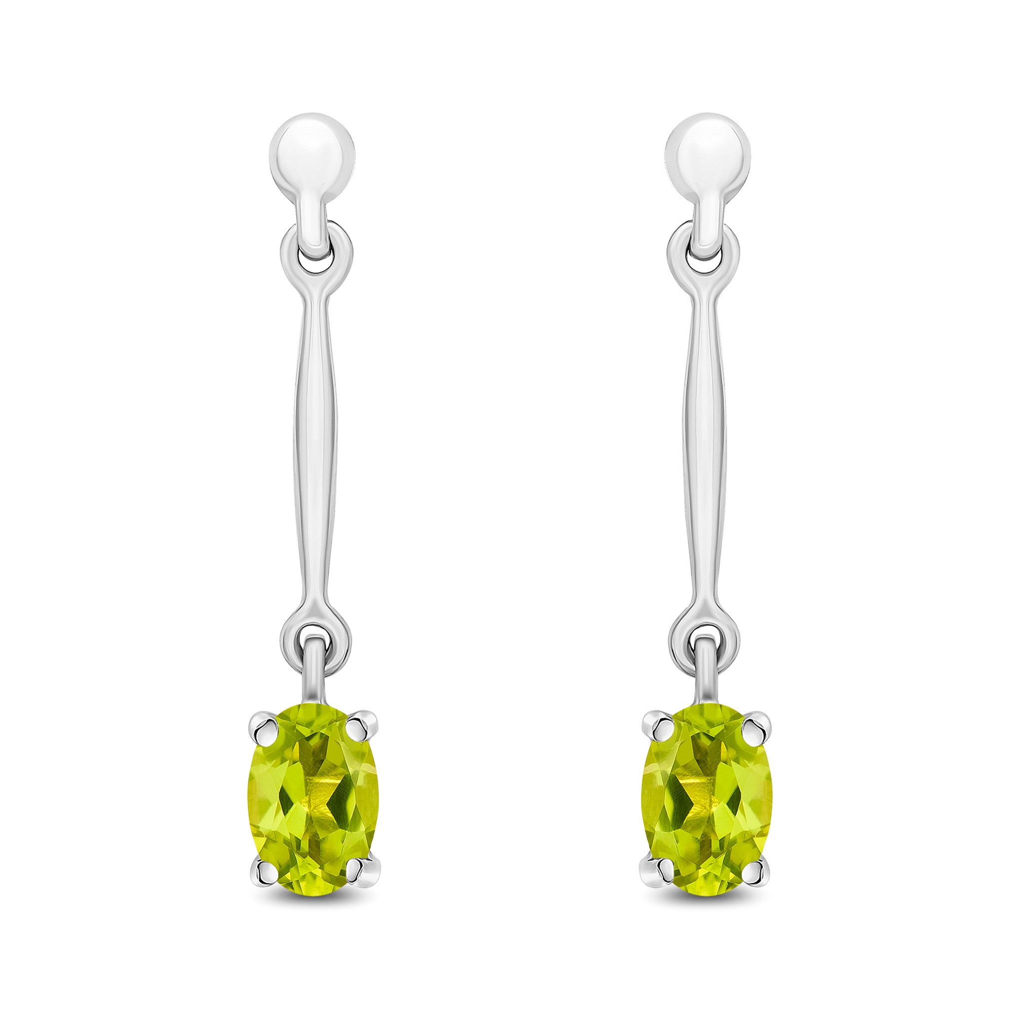 9CT White Gold Oval Peridot Bar Drop Earrings 6x4mm