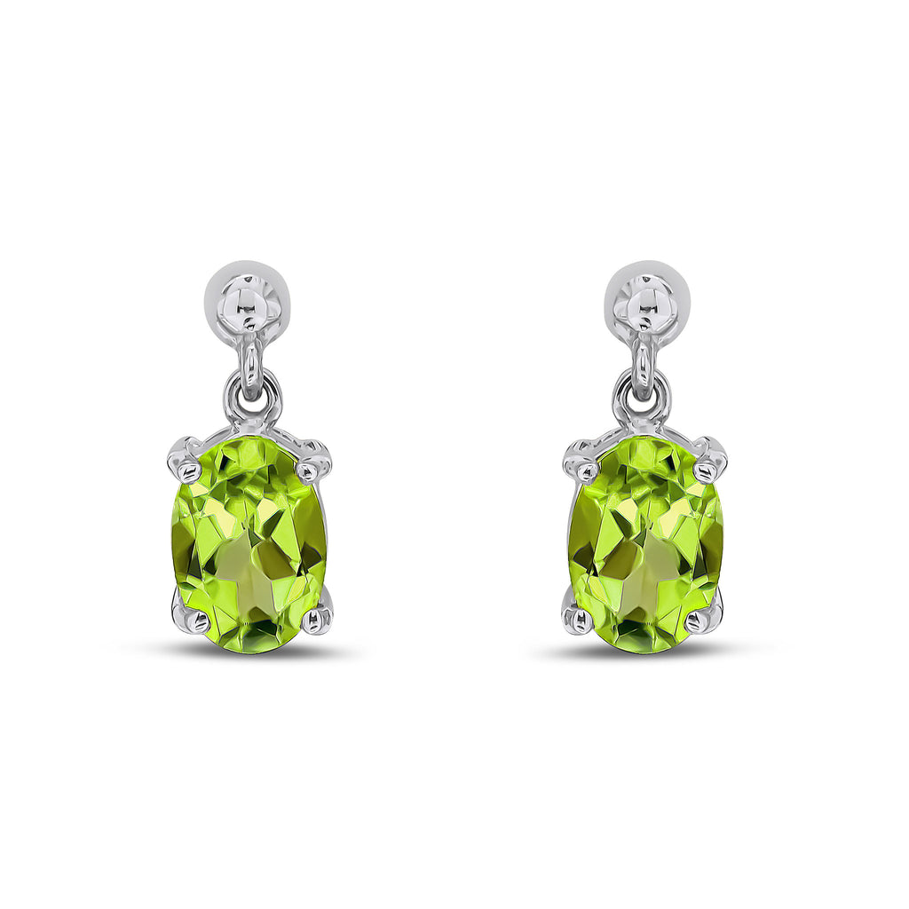 9CT White Gold Oval Peridot Claw Drop Earrings 7x5mm
