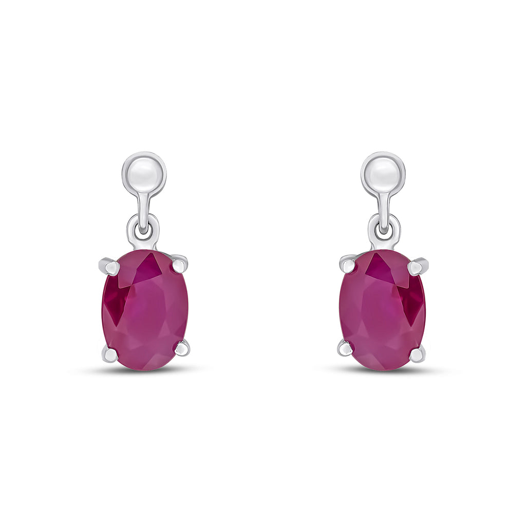 9CT White Gold Oval Shaped Ruby Drop Earrings 7x5mm