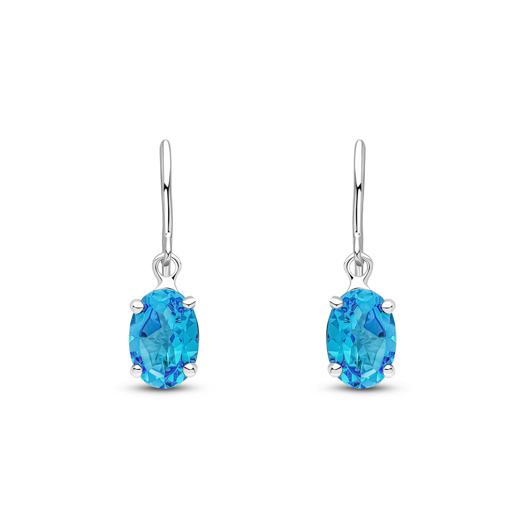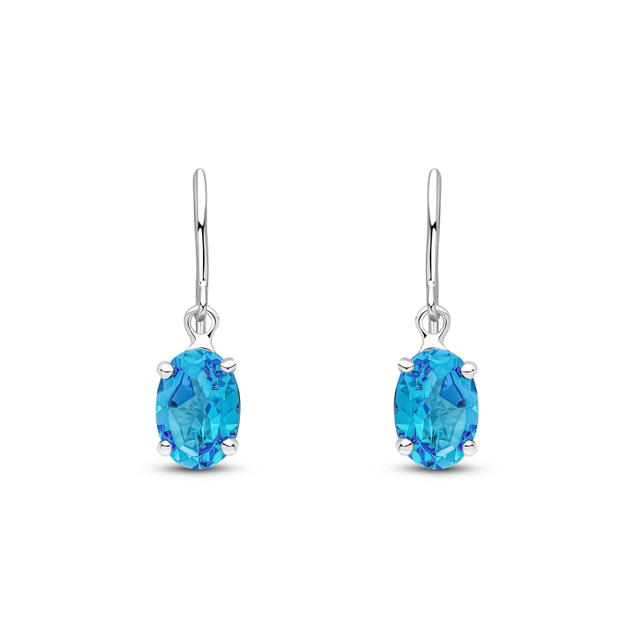9CT White Gold Oval Swiss Blue Topaz Claw Hook Wire Drop Earrings 7x5mm
