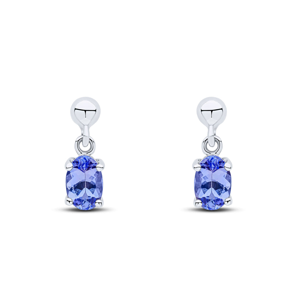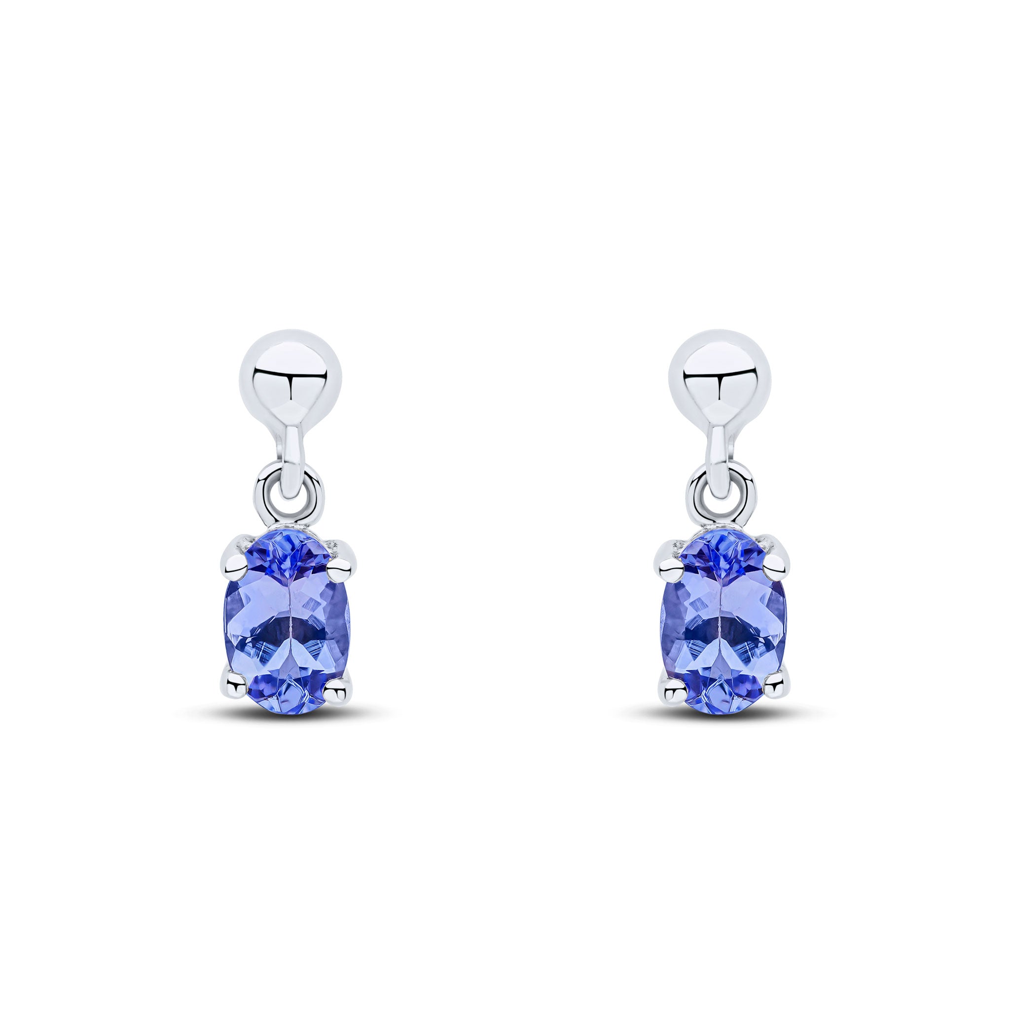 9CT White Gold Oval Tanzanite Claw Drop Earrings 6x4mm