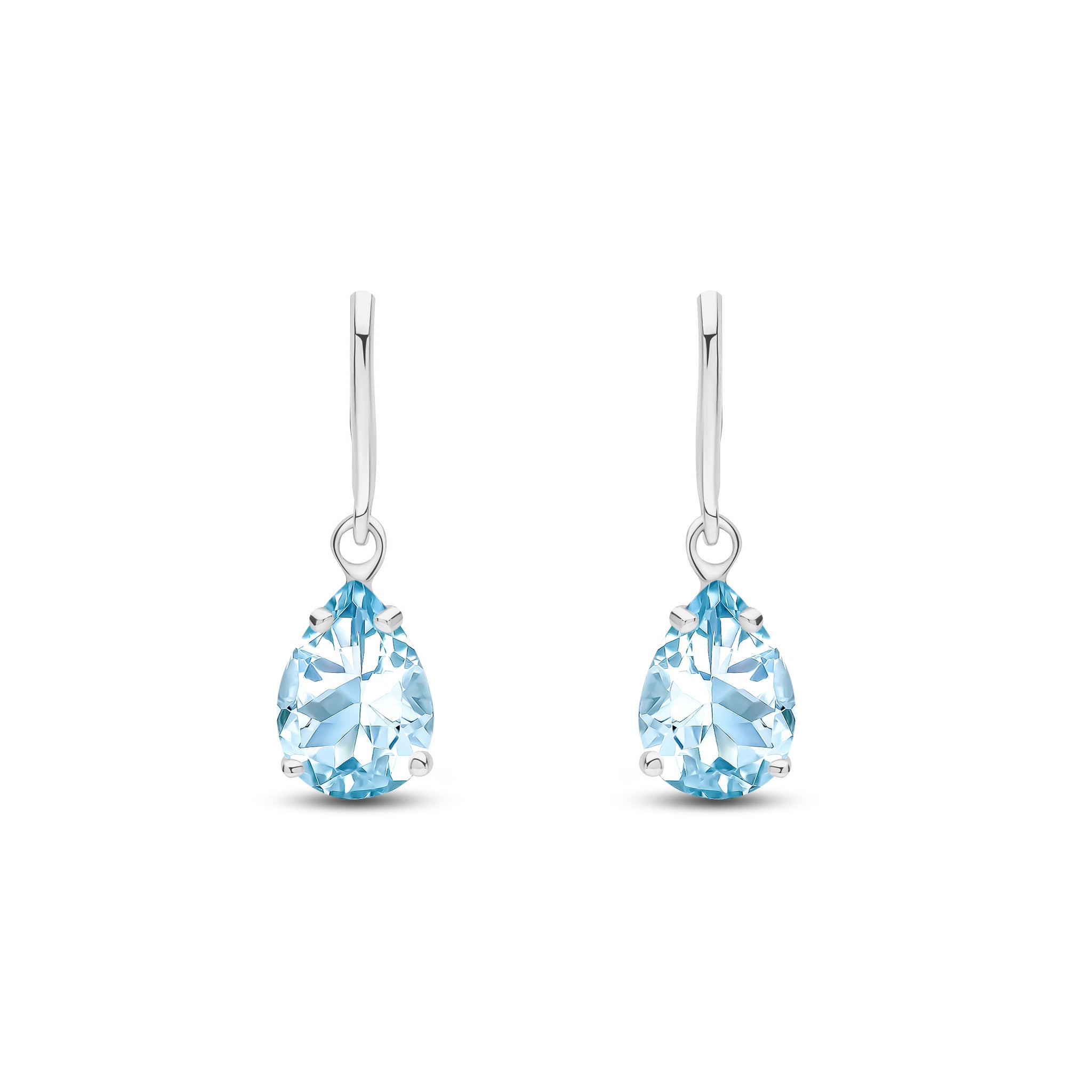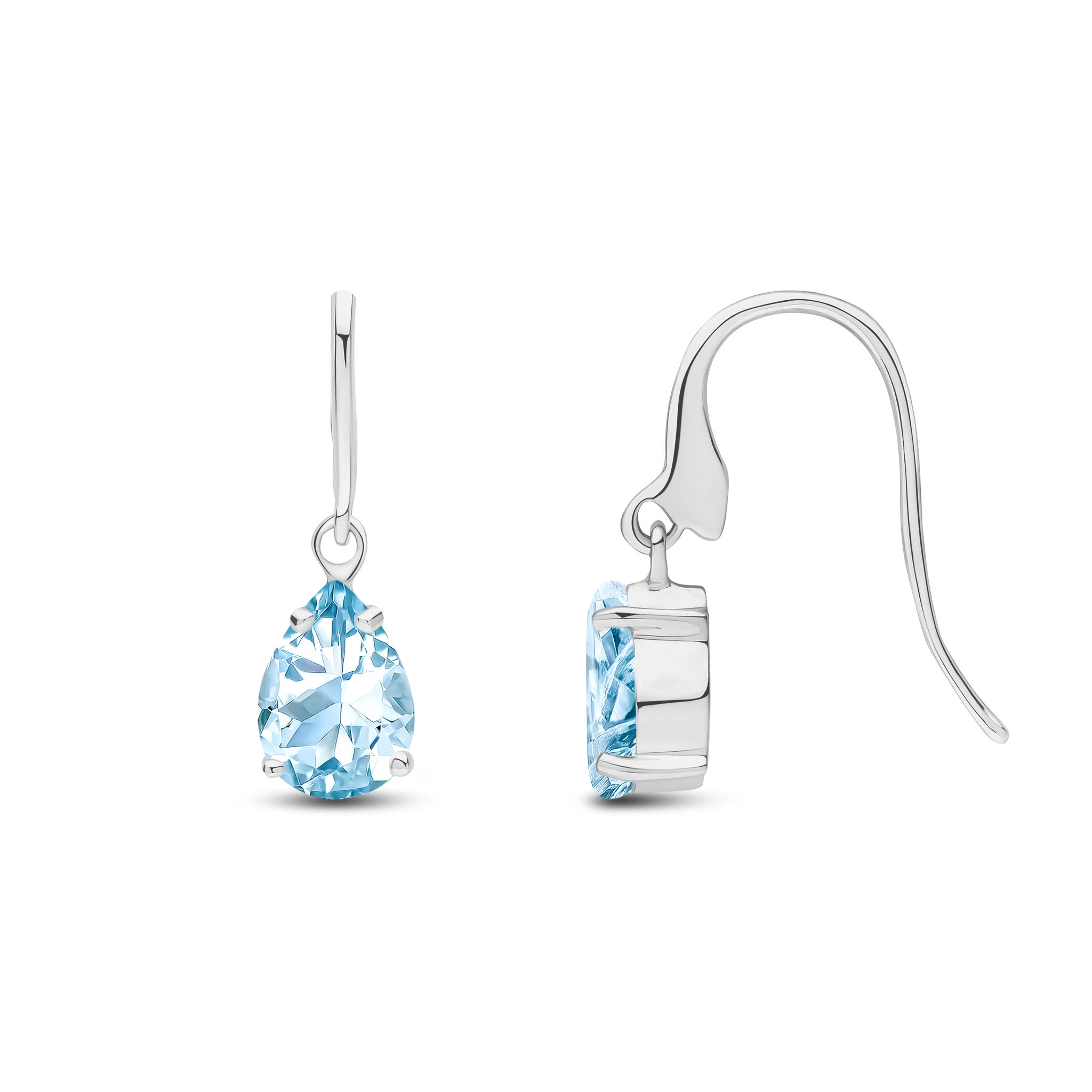 9CT White Gold Pear Shaped Aquamarine Claw Drop Earrings 7x5mm