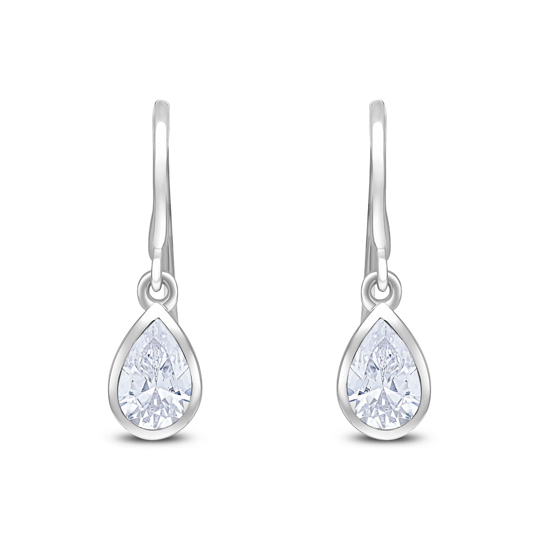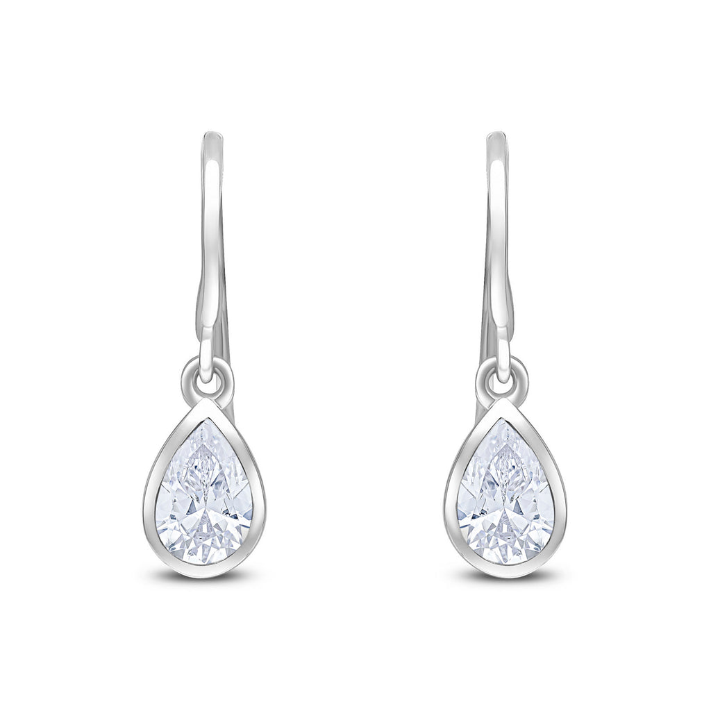 9CT White Gold Pear Shaped Cubic Zirconia CZ Rubover Wire Hook Drop Earrings 6x4mm