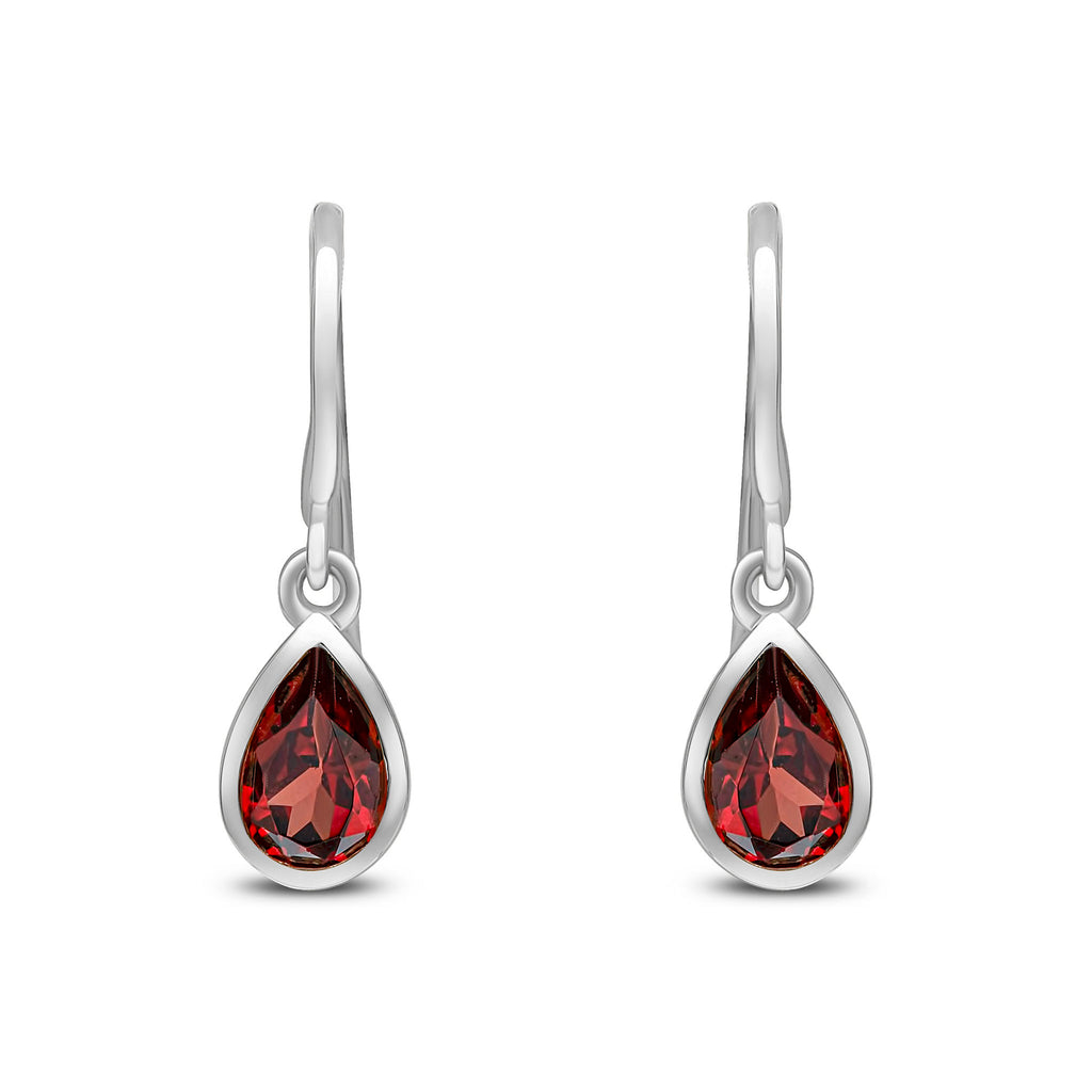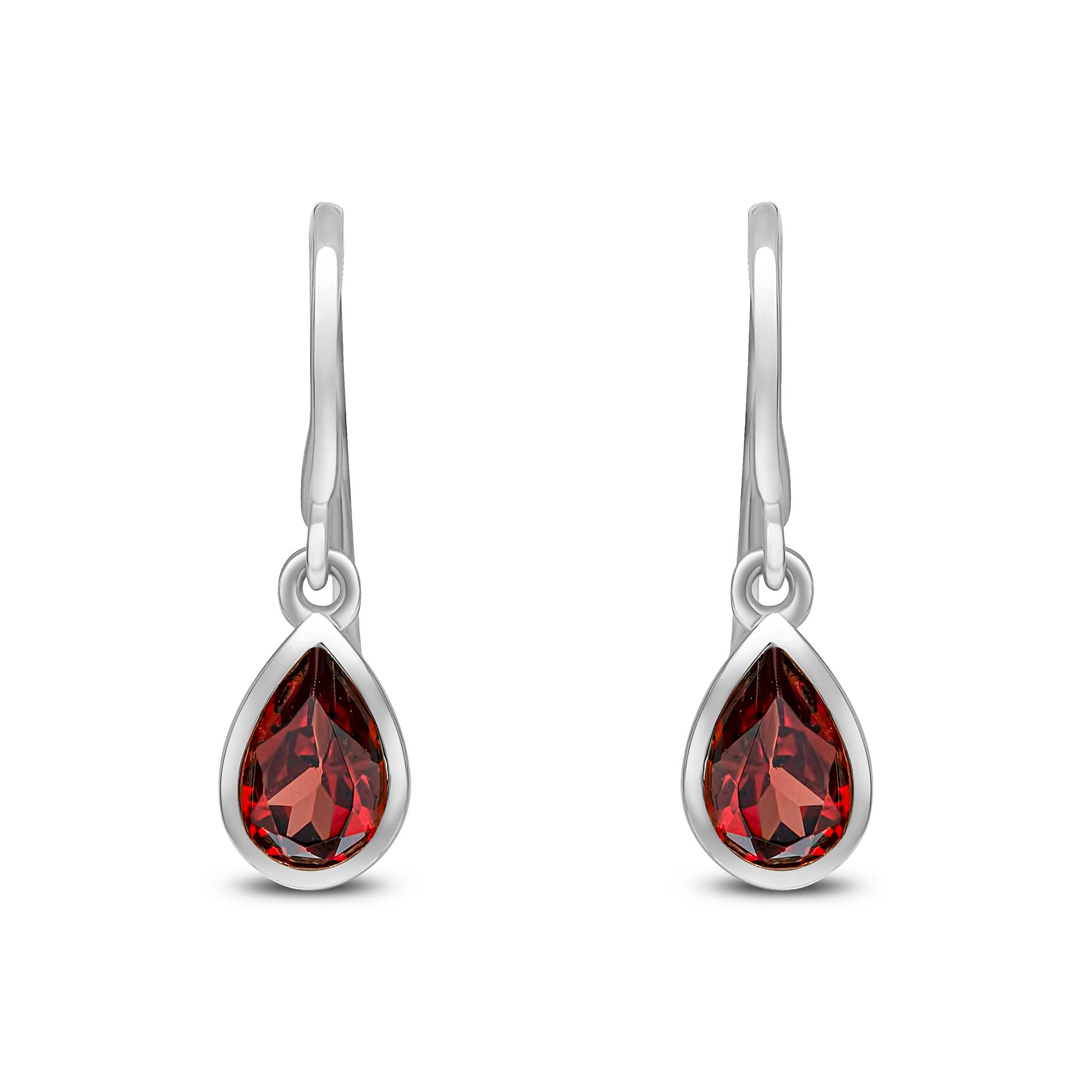 9CT White Gold Pear Shaped Garnet Rubover Wire Hook Drop Earrings 6x4mm
