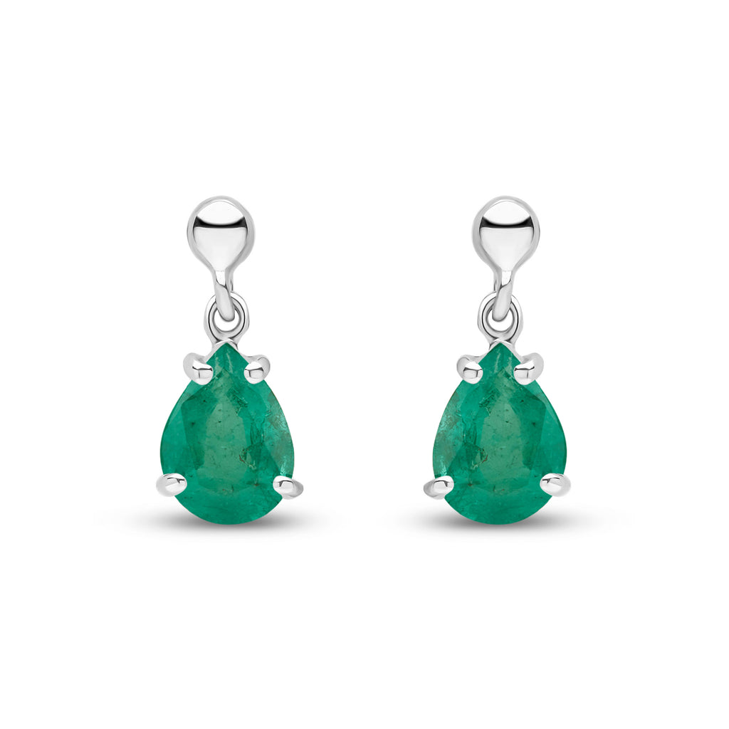 9CT White Gold Pear Shaped Shaped Emerald Drop Earrings 7x5mm