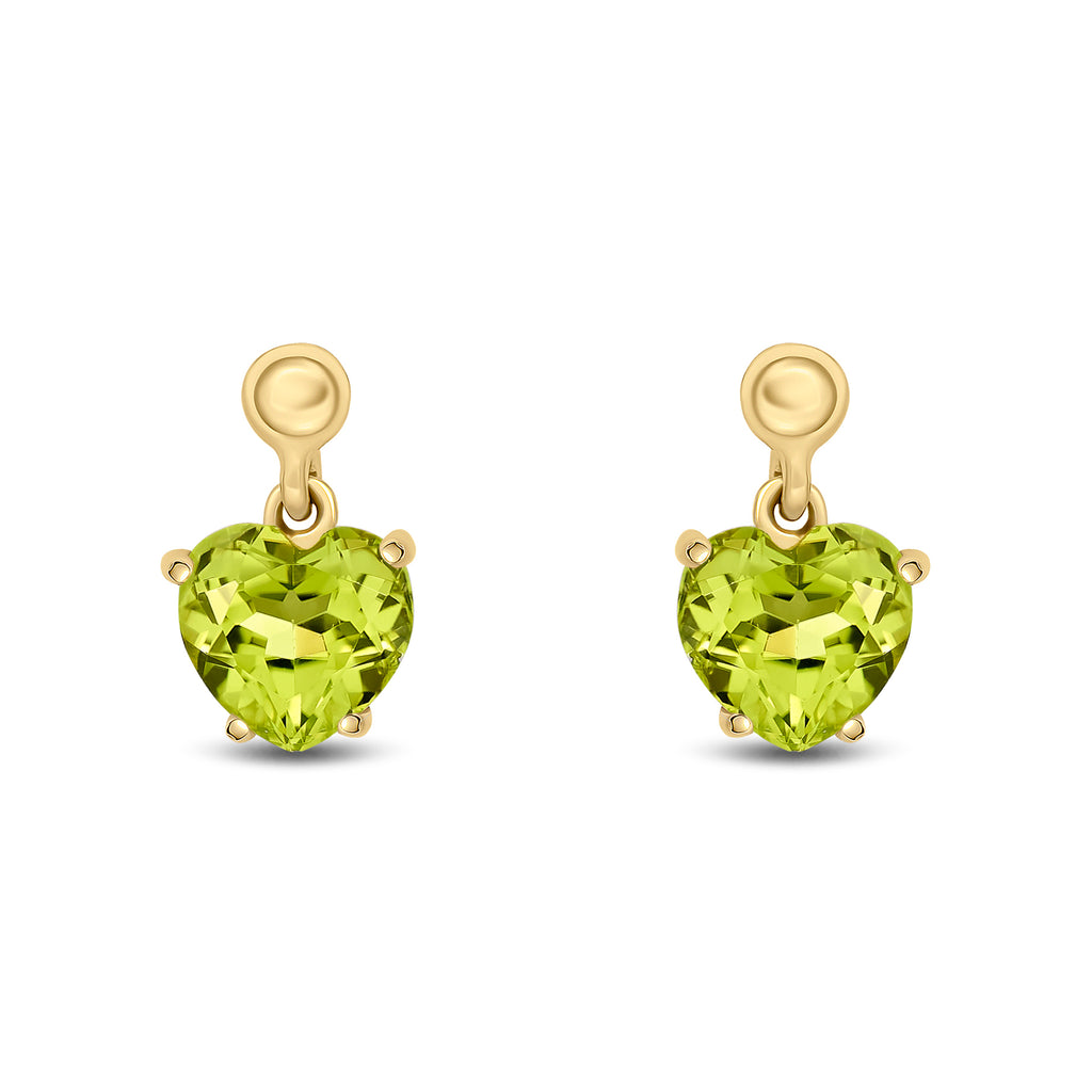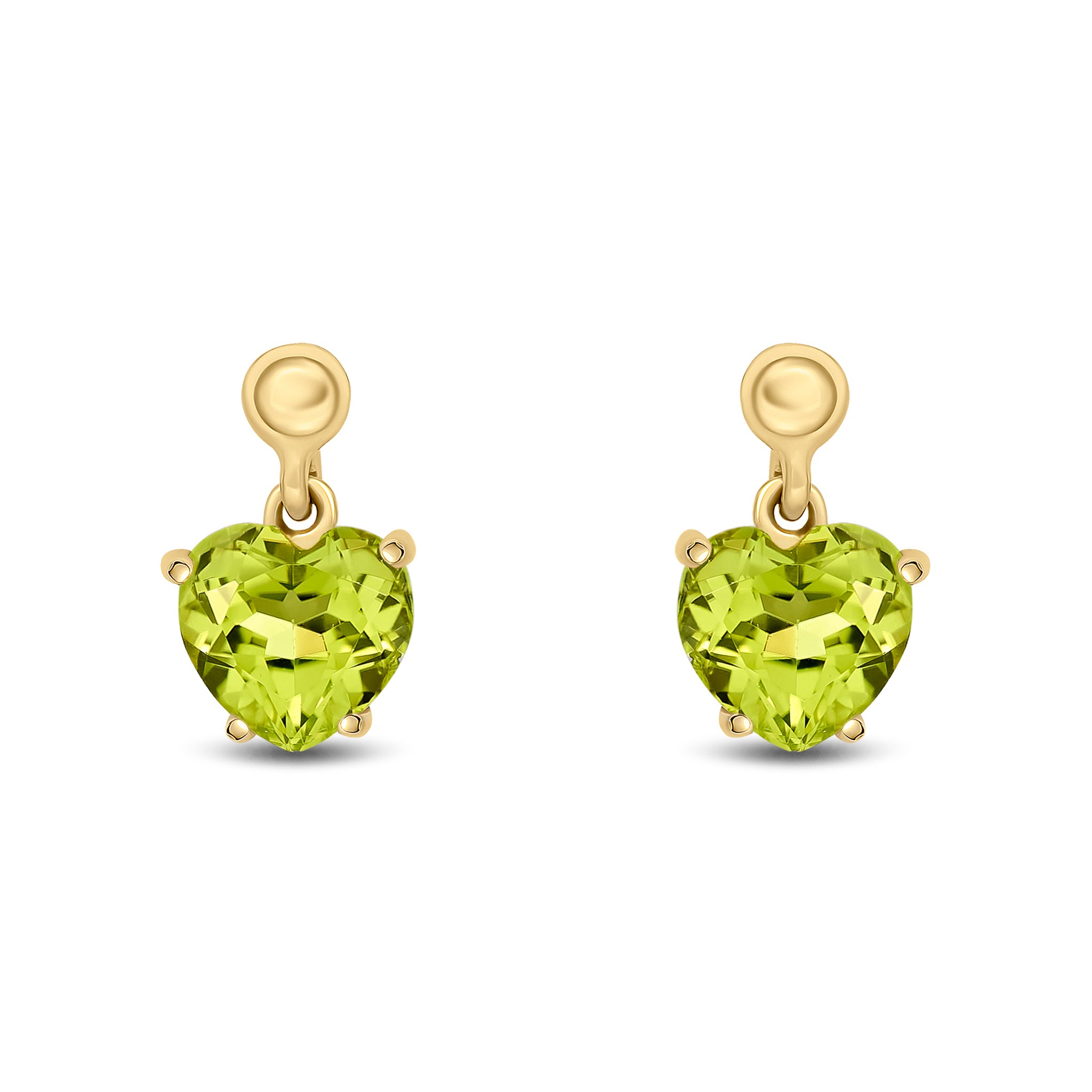 9CT Yellow Gold Heart Peridot Claw Drop Earrings 6mm