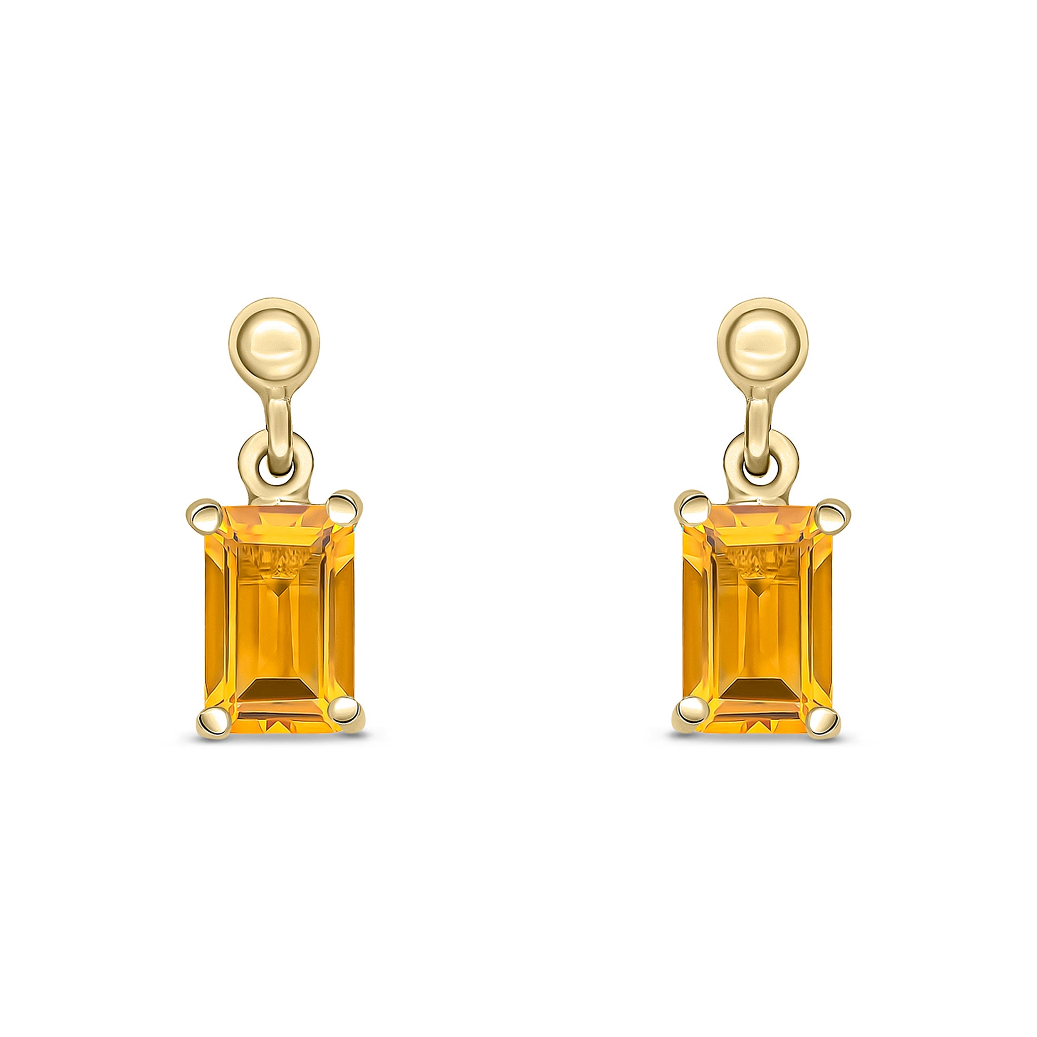 9CT Yellow Gold Octagonal Citrine Claw Drop Earrings 6x4mm