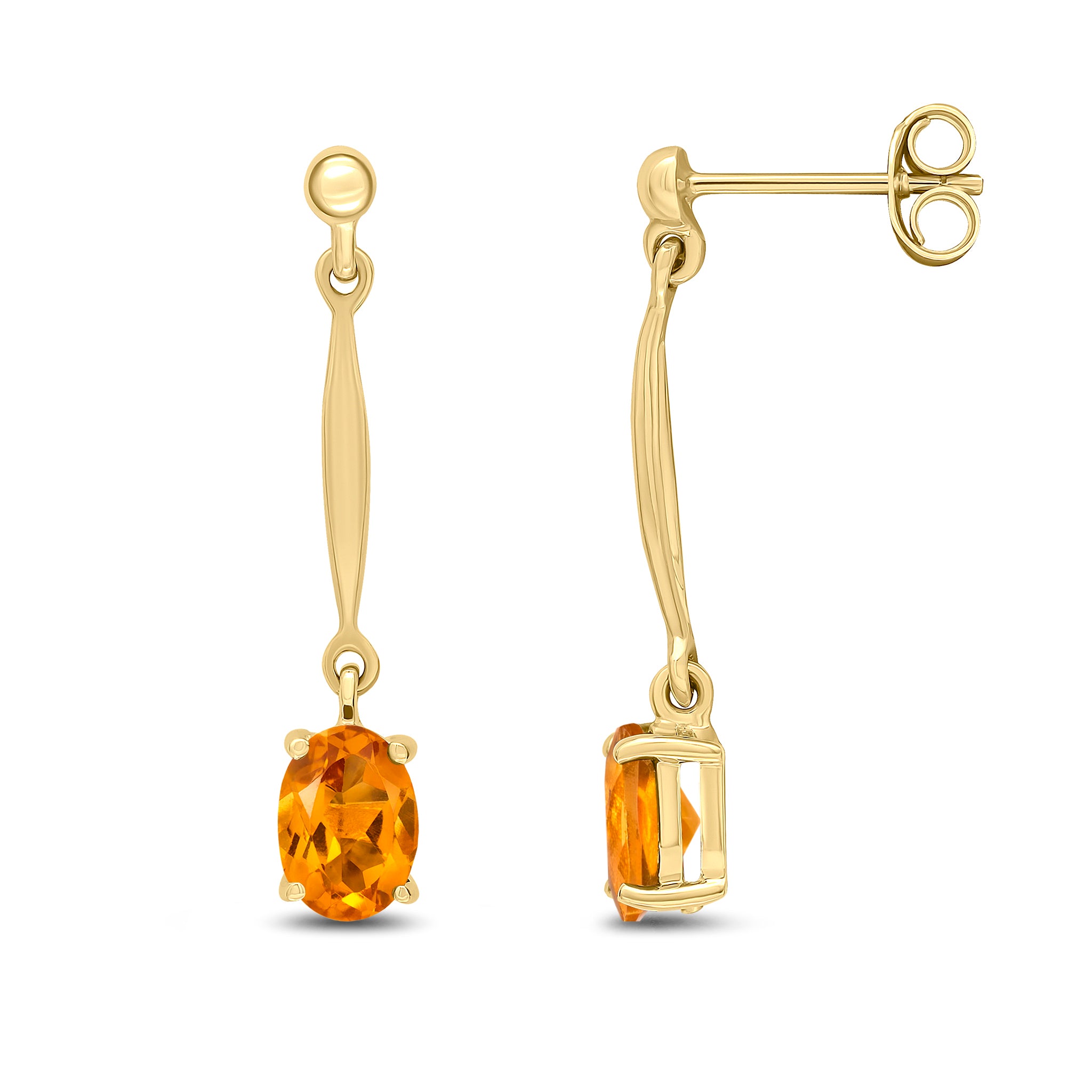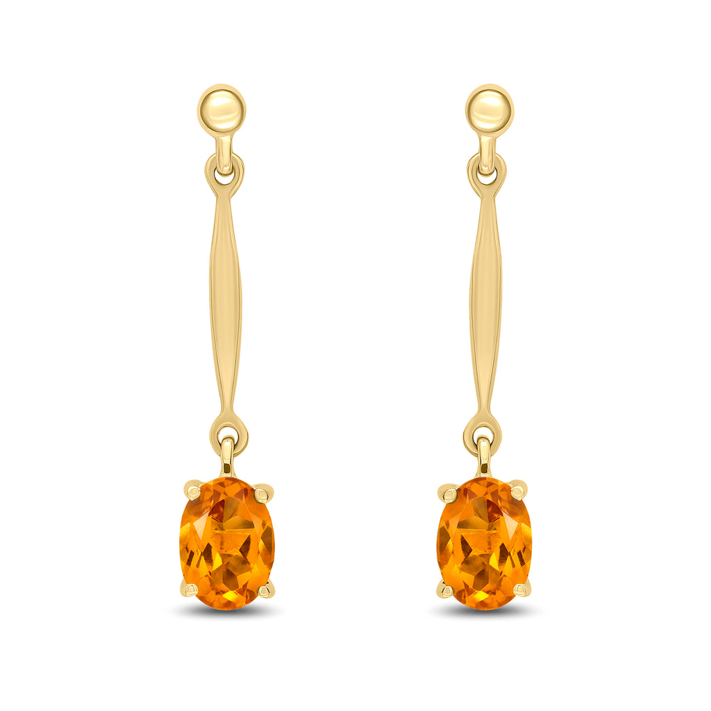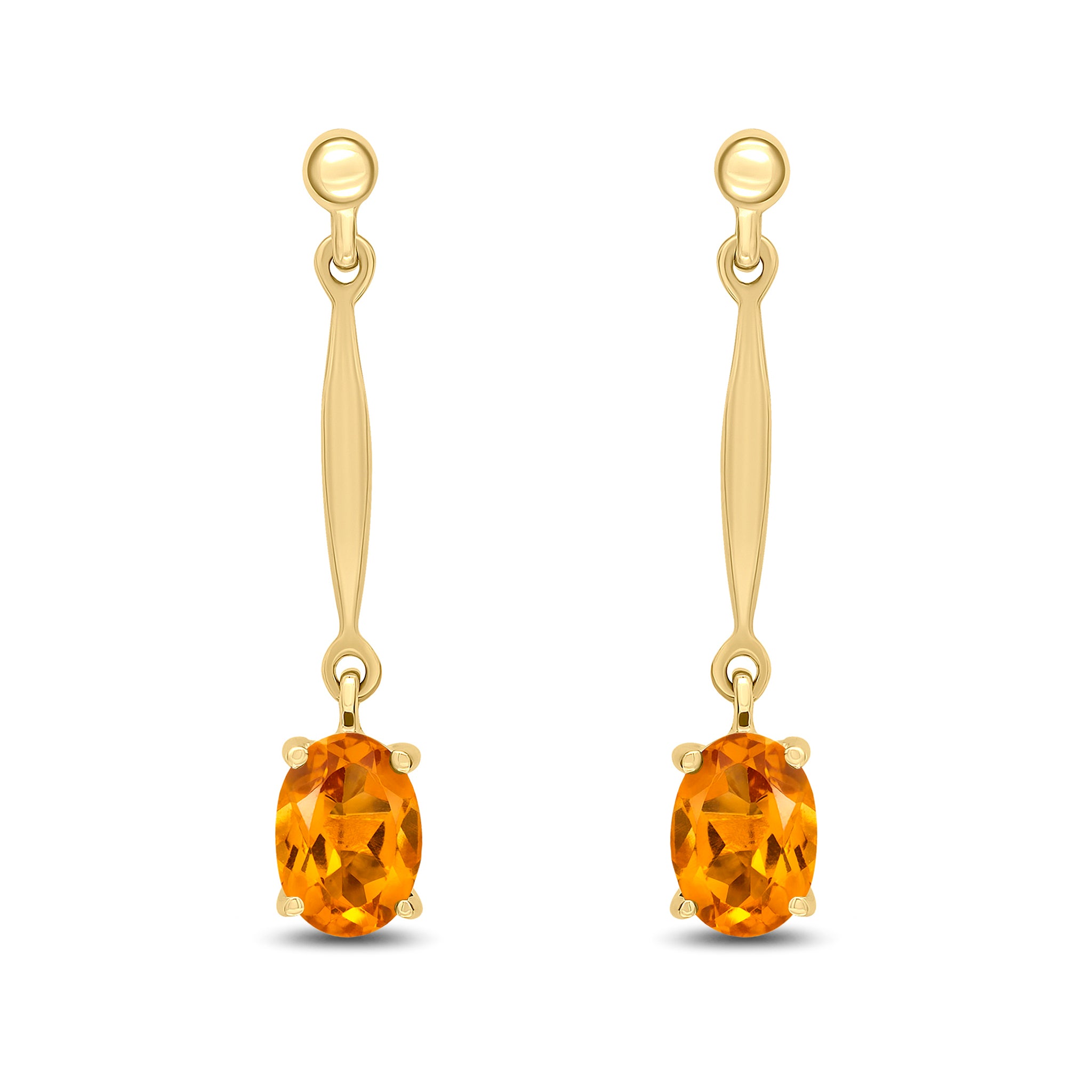 9CT Yellow Gold Oval Citrine Claw Bar Drop Earrings 7x5mm