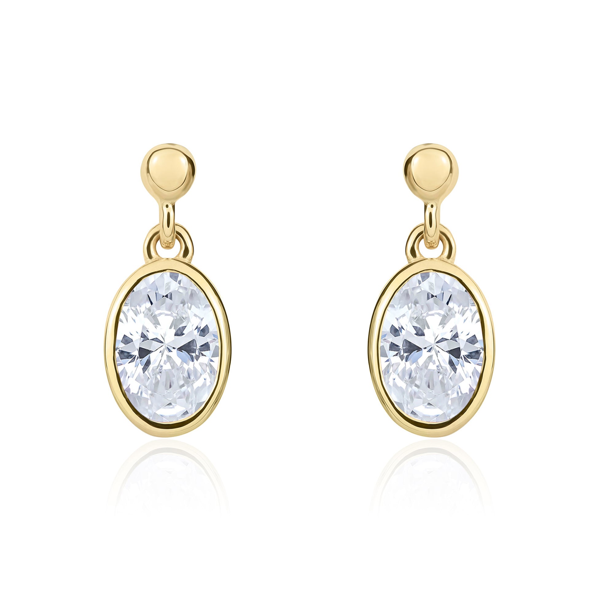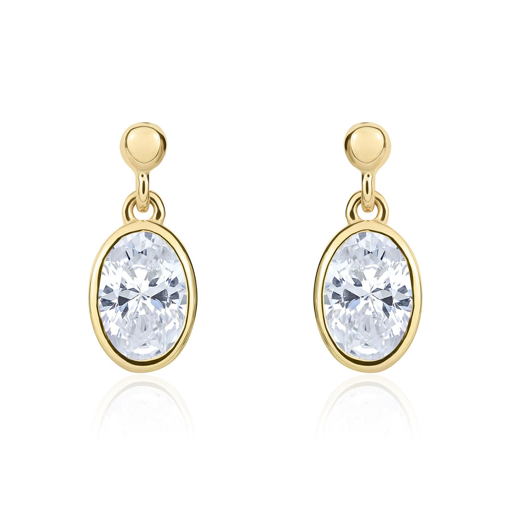 9CT Yellow Gold Oval Cubic Zirconia CZ Drop Earrings 6x4mm