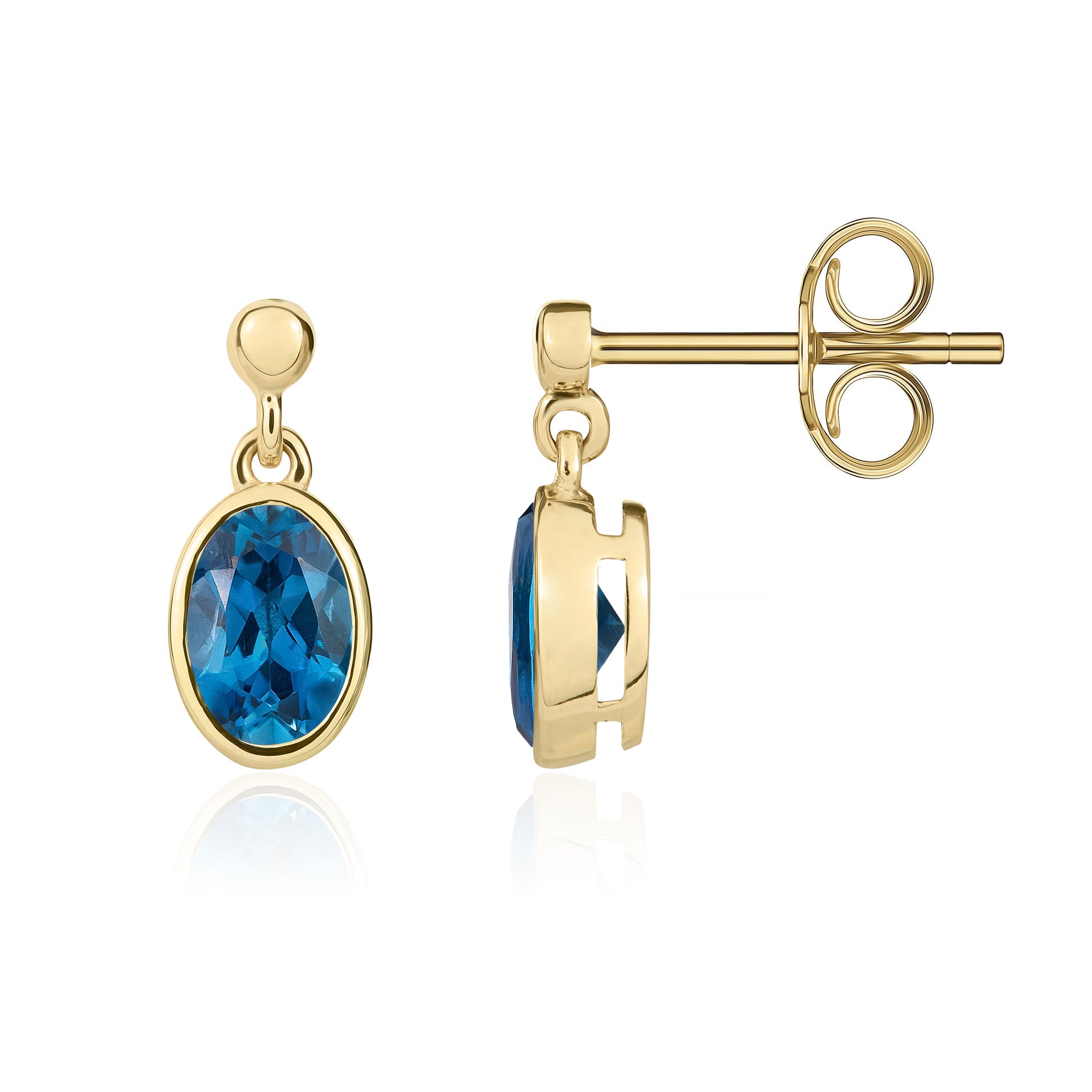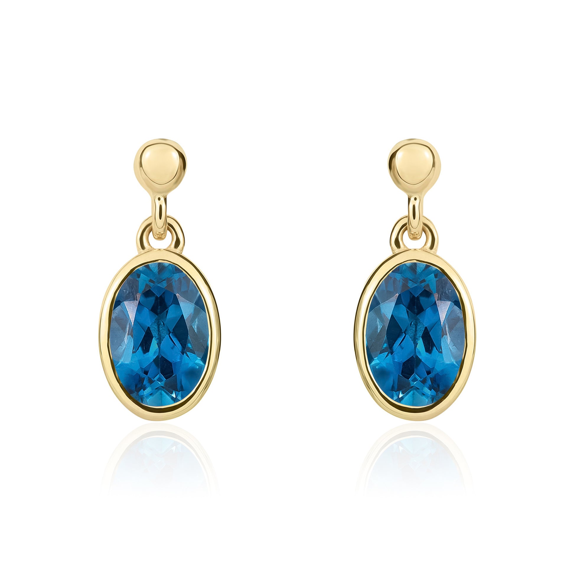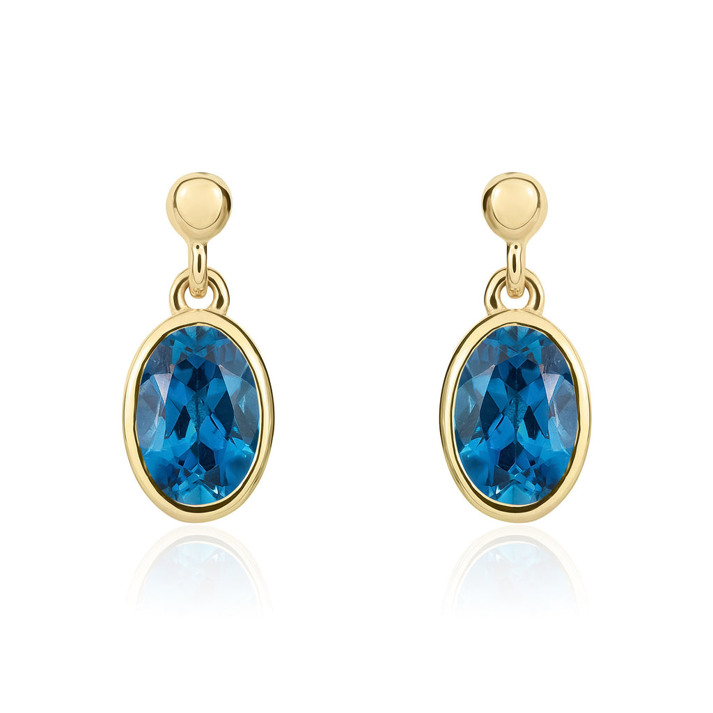 9CT Yellow Gold Oval London Blue Topaz Drop Earrings 6x4mm