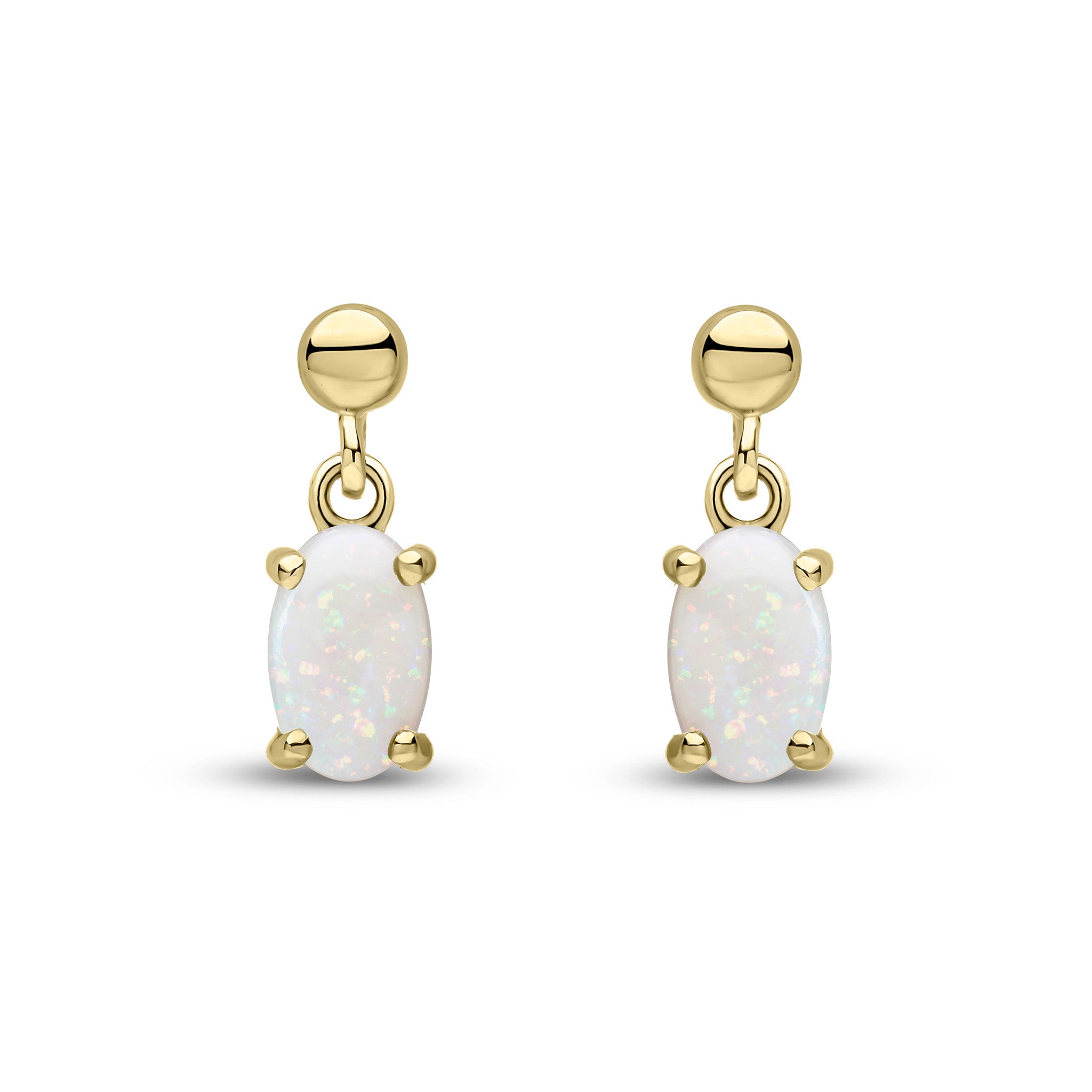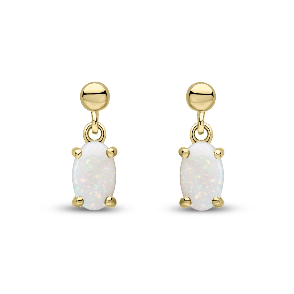 9CT Yellow Gold Oval Opal Drop Earrings 6x4mm