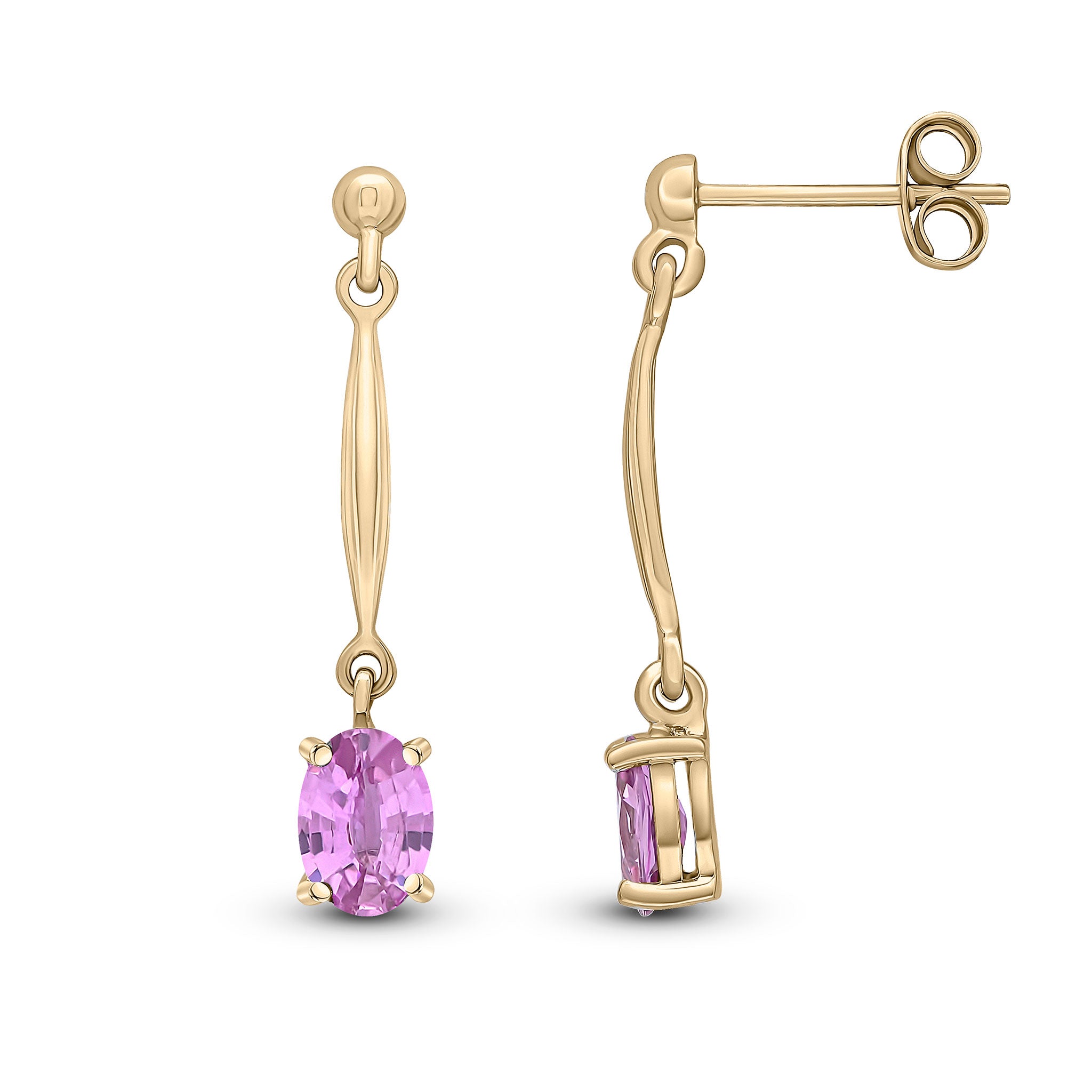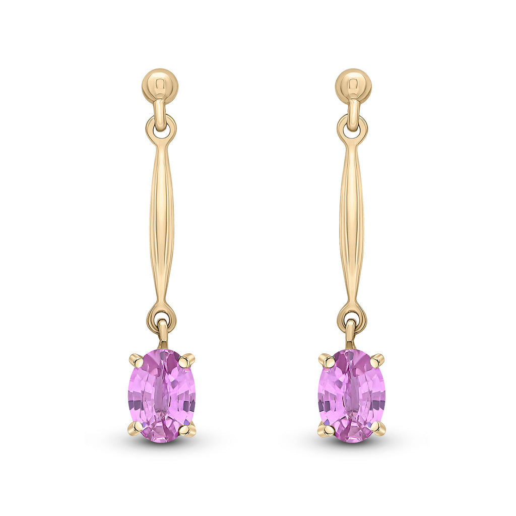 9CT Yellow Gold Oval Pink Sapphire Claw Bar Drop Earrings 6x4mm