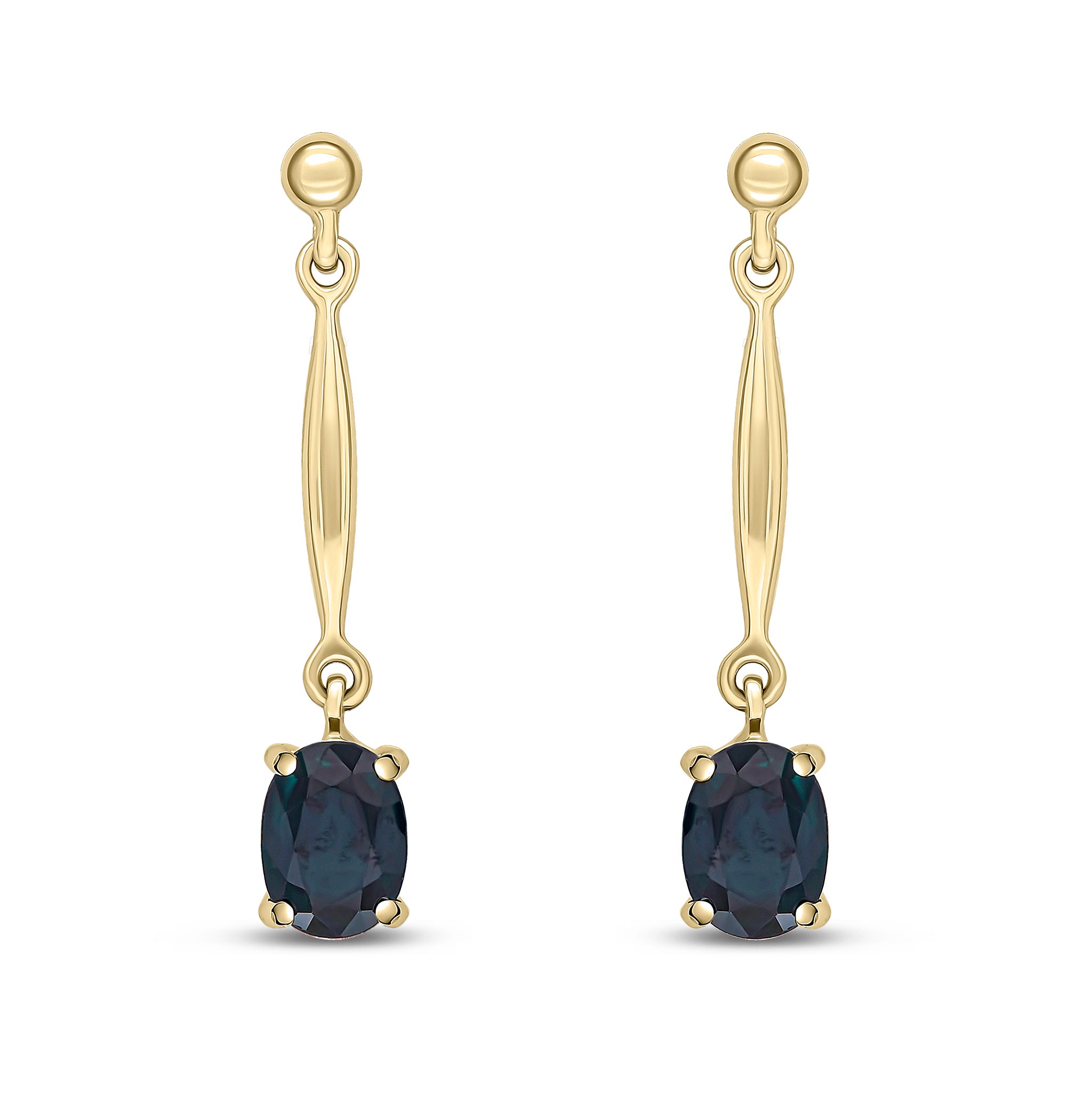 9CT Yellow Gold Oval Sapphire Claw Bar Drop Earrings 7x5mm