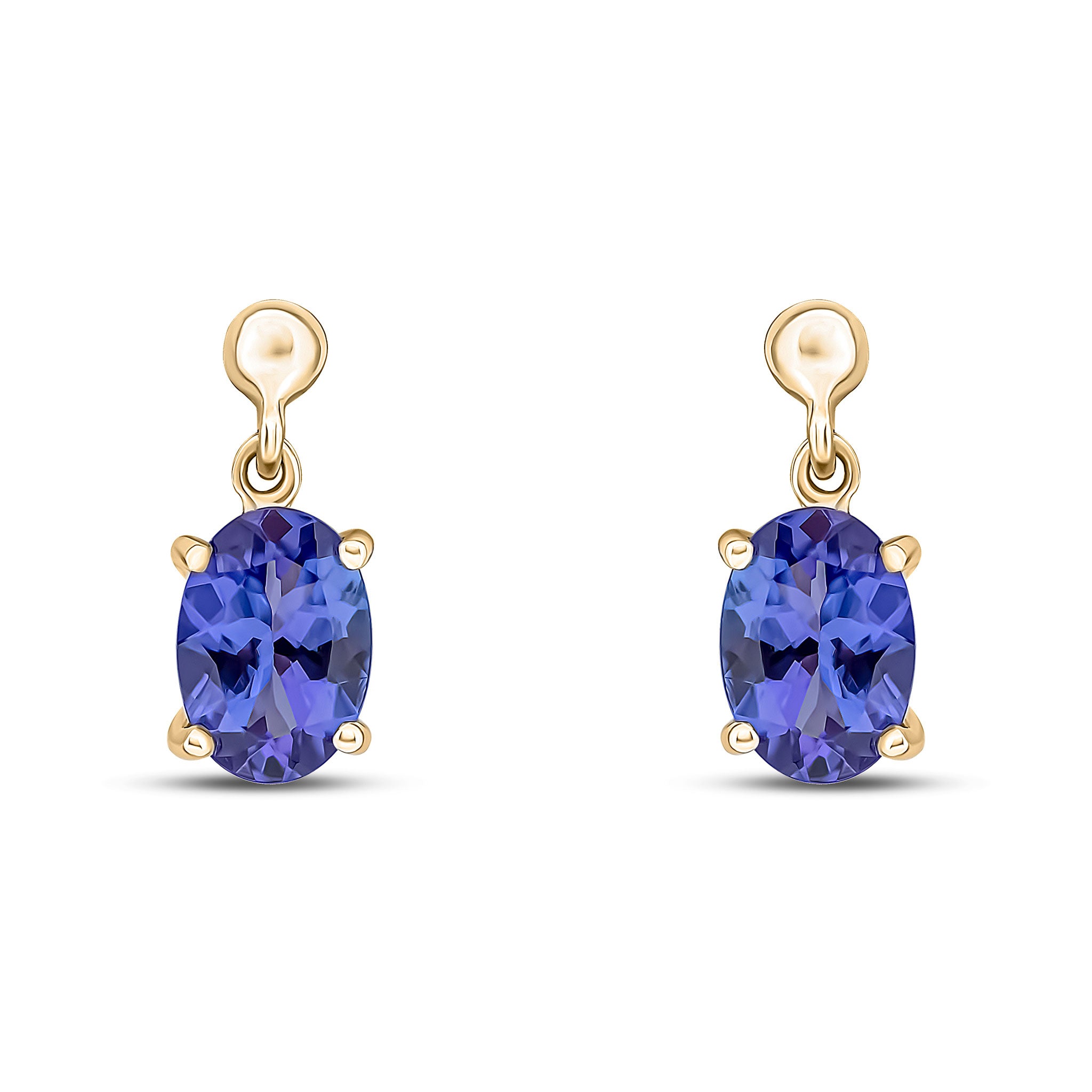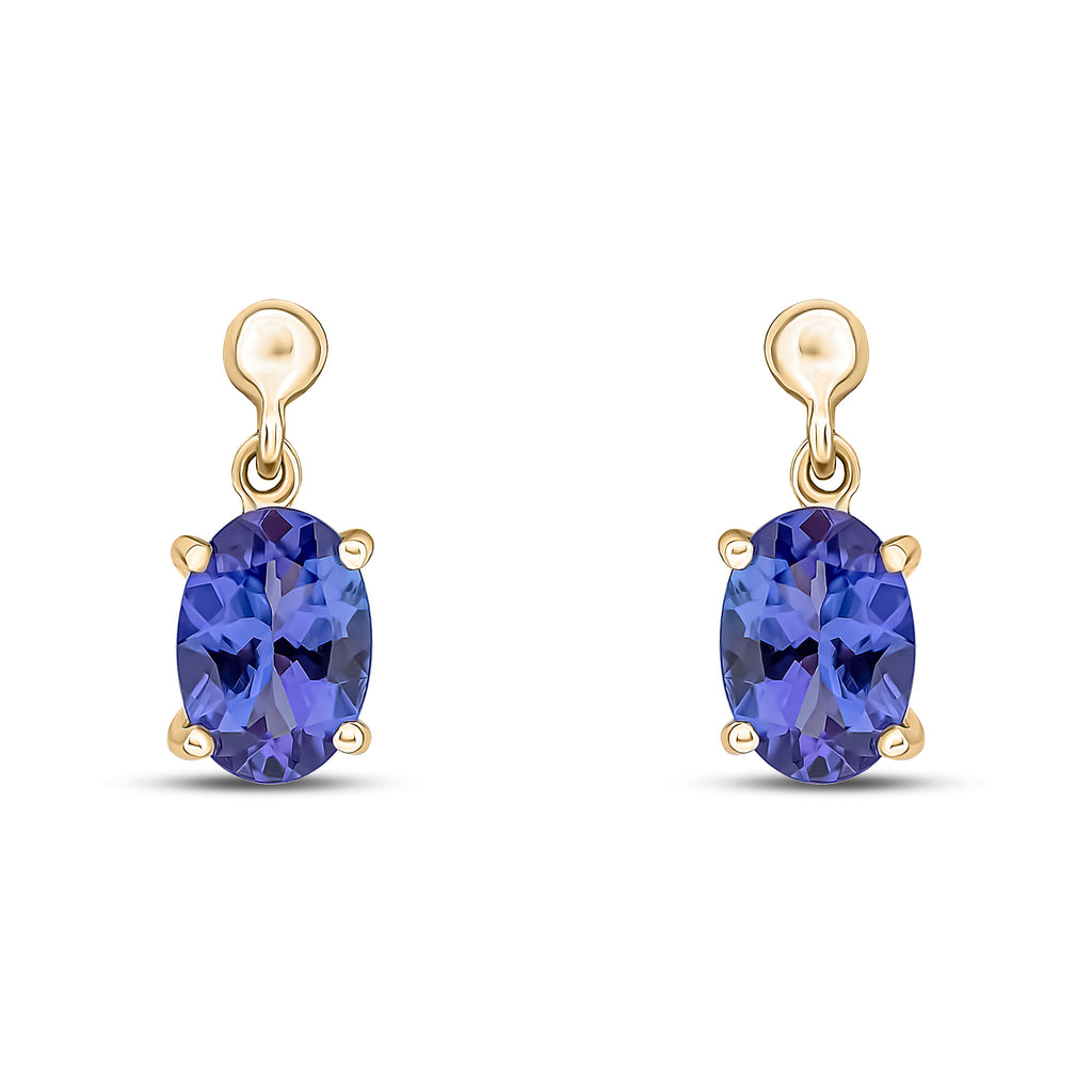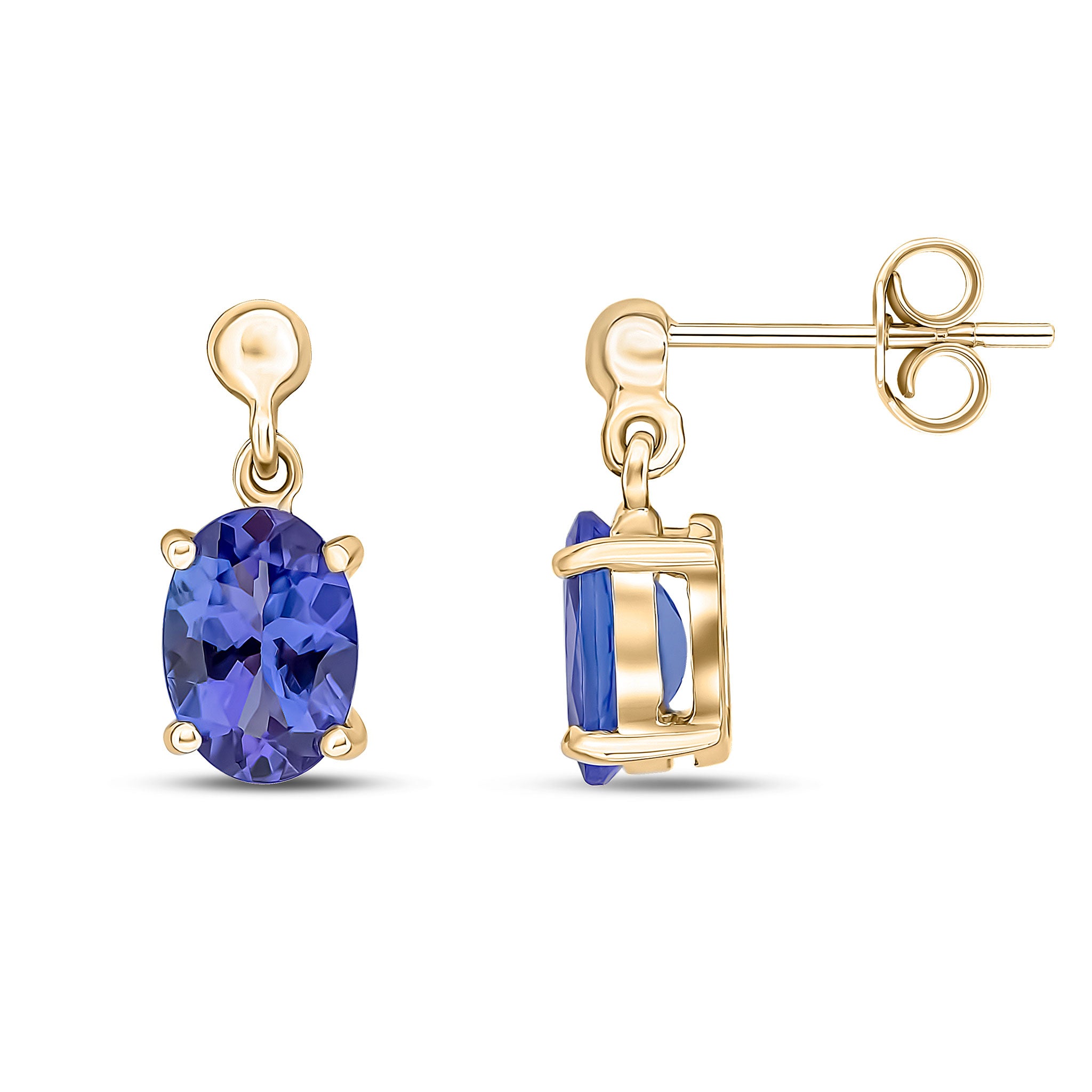 9CT Yellow Gold Oval Shaped Tanzanite Claw Drop Earrings 7x5mm
