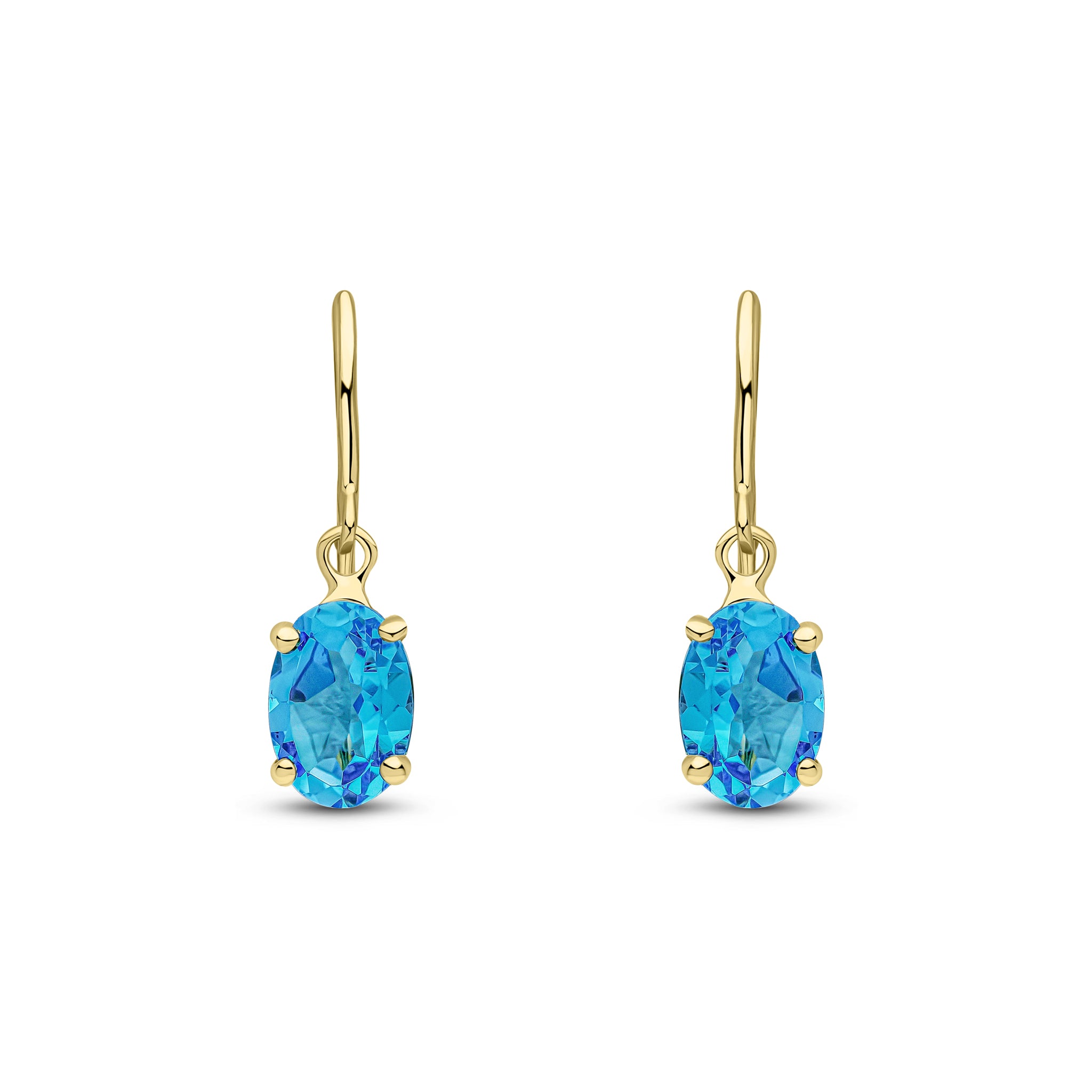 9CT Yellow Gold Oval Swiss Blue Topaz Claw Hook Wire Drop Earrings 7x5mm