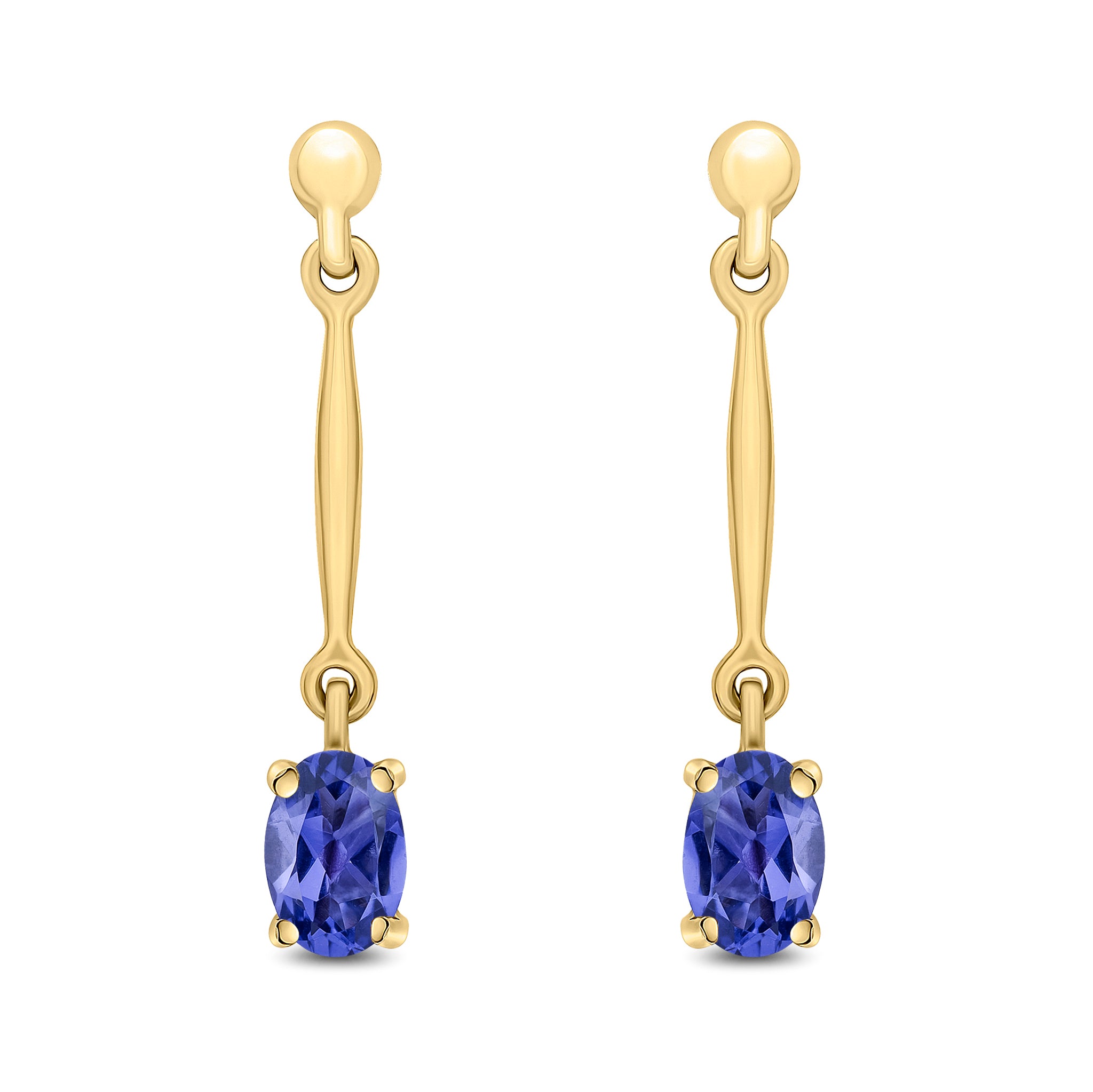 9CT Yellow Gold Oval Tanzanite Claw Bar Drop Earrings 6x4mm