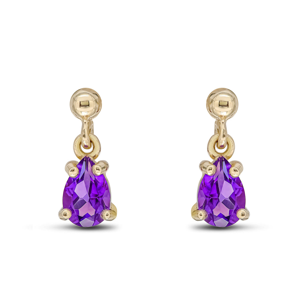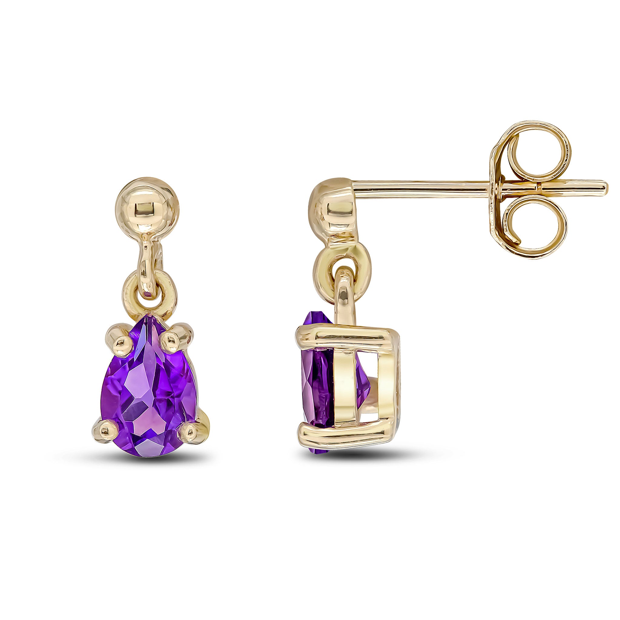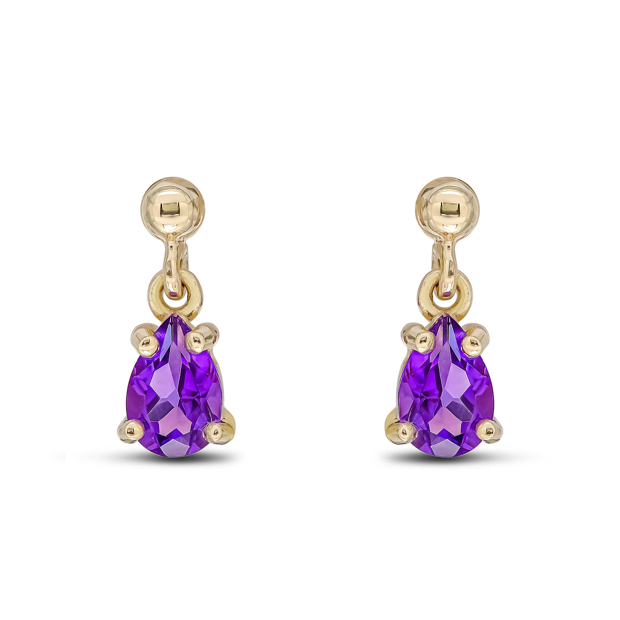 9CT Yellow Gold Pear Shaped Amethyst Claw Drop Earrings 6x4mm