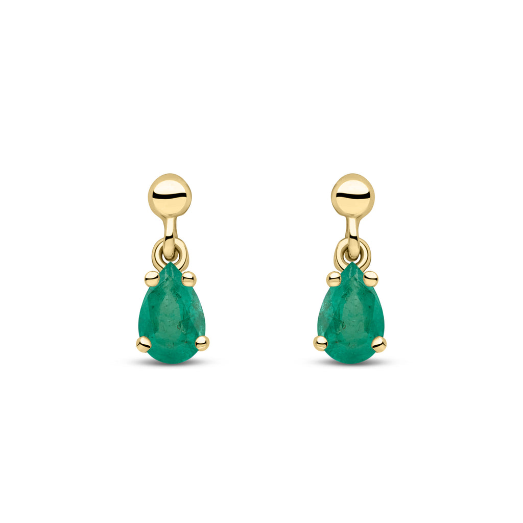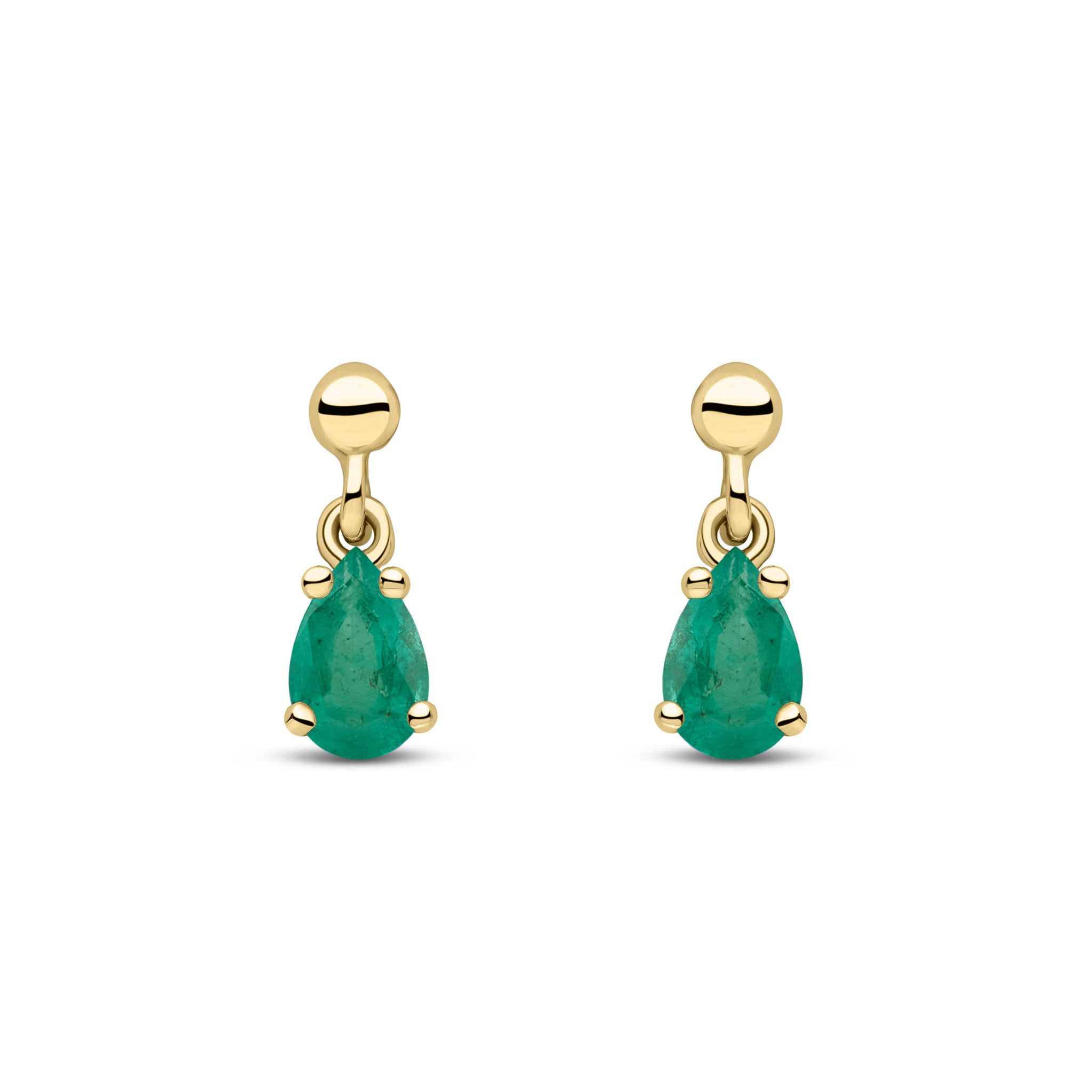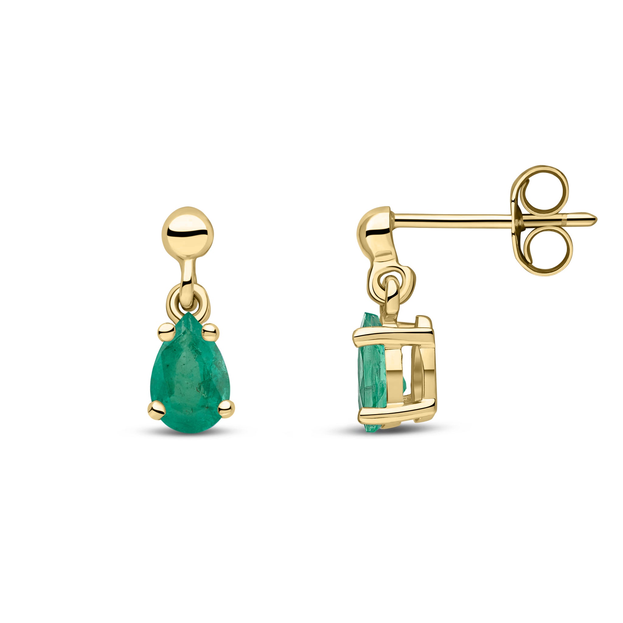 9CT Yellow Gold Pear Shaped Emerald Claw Drop Earrings 6x4mm