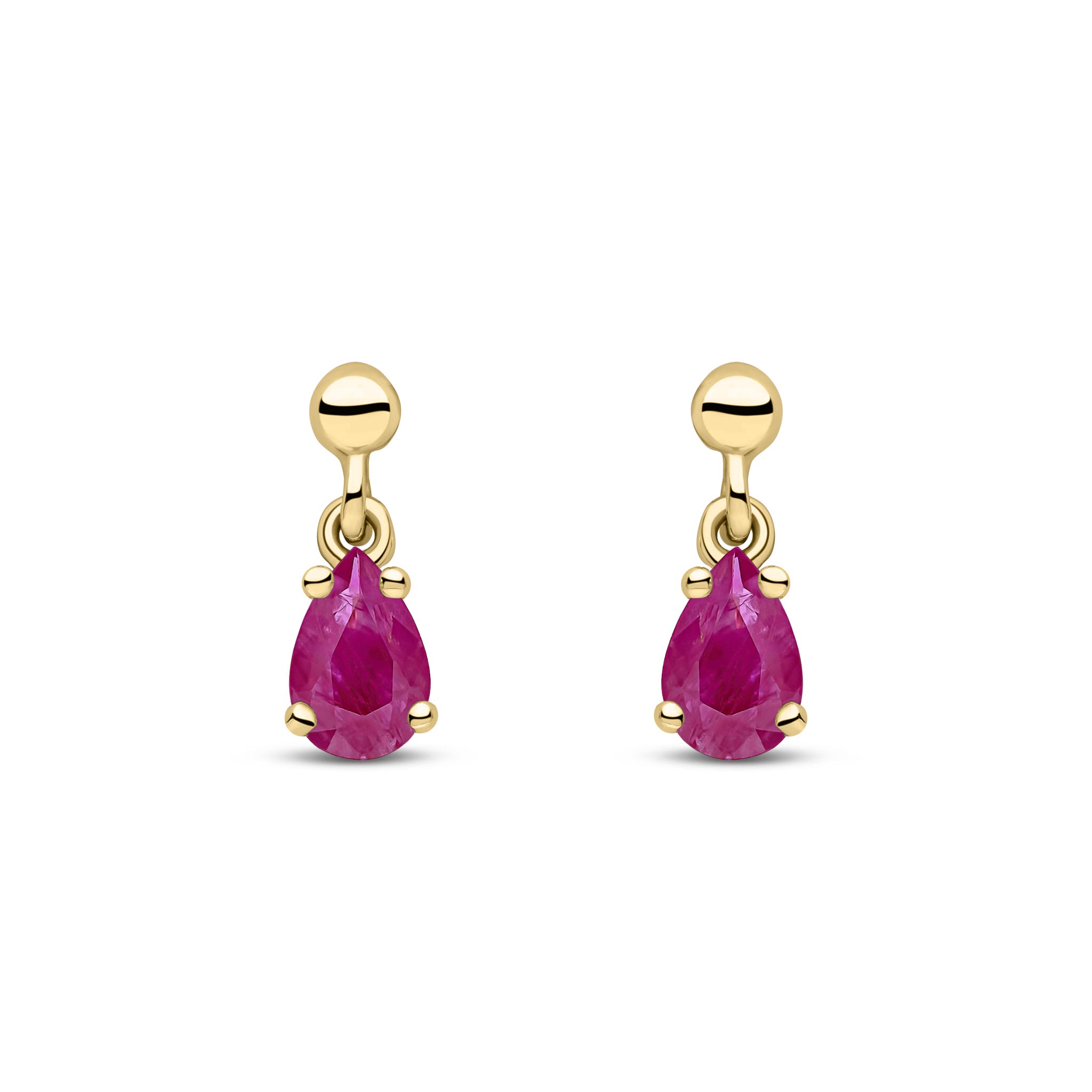 9CT Yellow Gold Pear Shaped Ruby Claw Drop Earrings 6x4mm