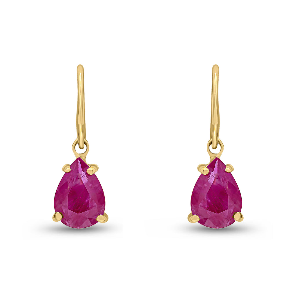 9CT Yellow Gold Pear Shaped Ruby Claw Wire Hook Drop Earrings 7x5mm