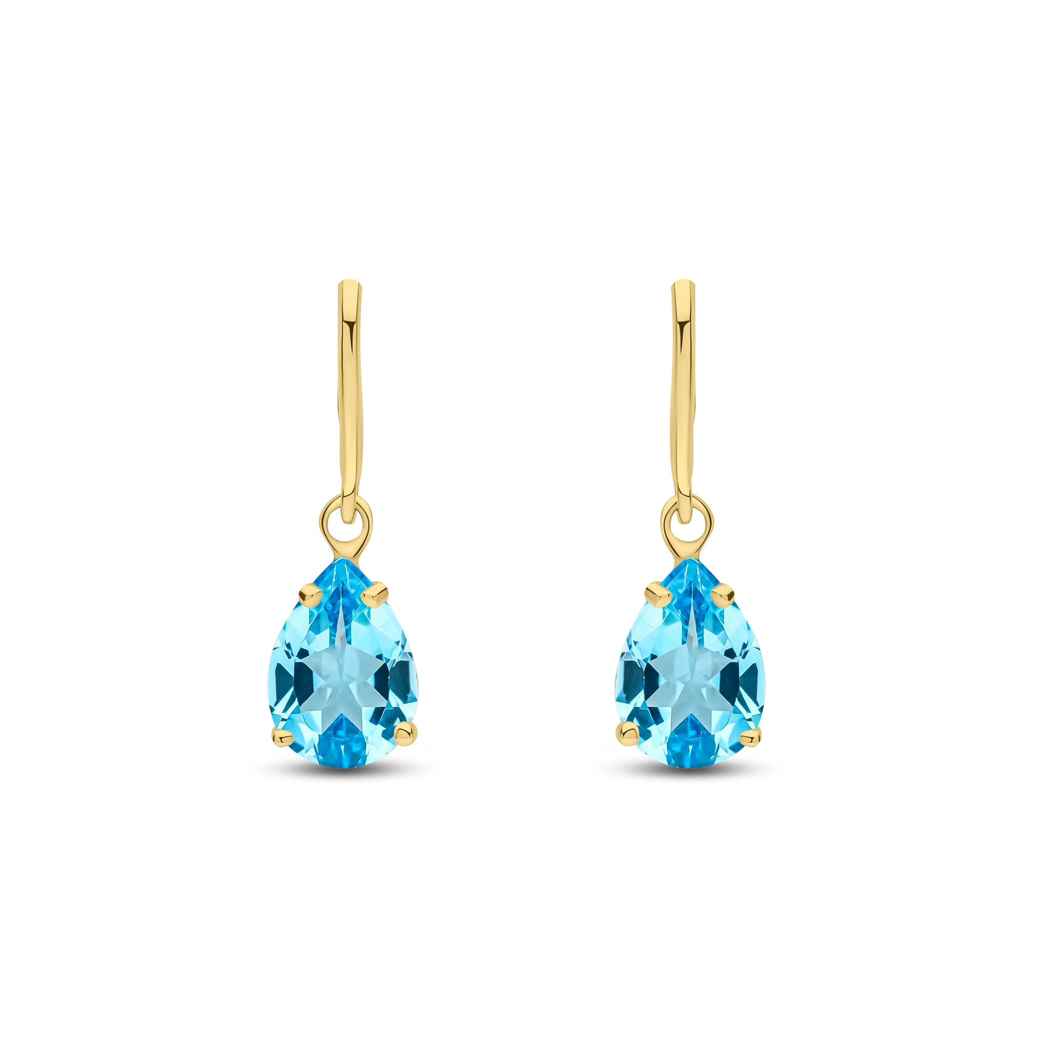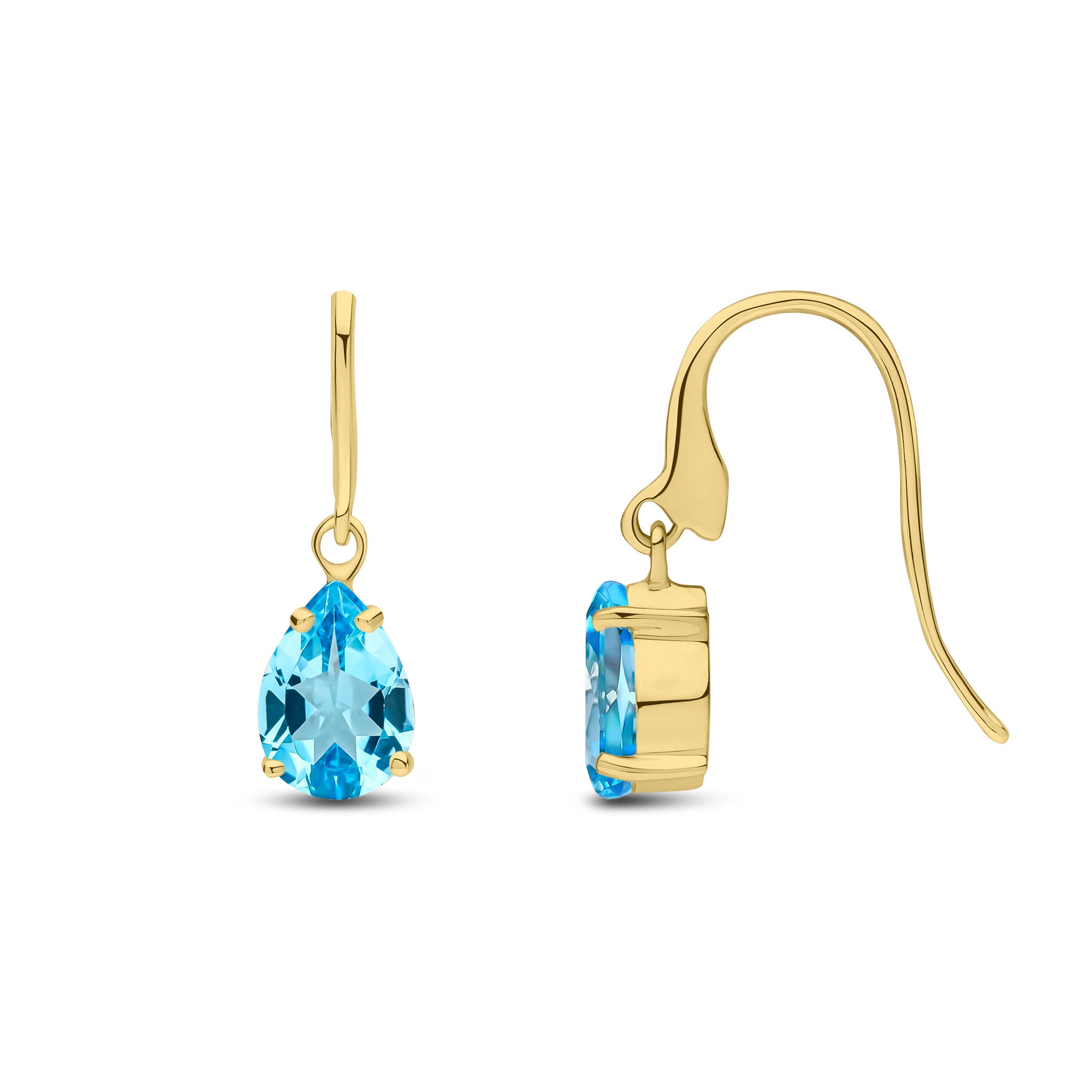 9CT Yellow Gold Pear Shaped Swiss Blue Topaz Claw Drop Earrings 7x5mm