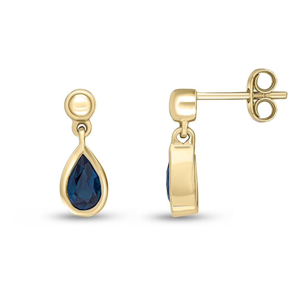 9CT Yellow Gold Pear Shaped Sapphire Drop Earrings 6x4mm