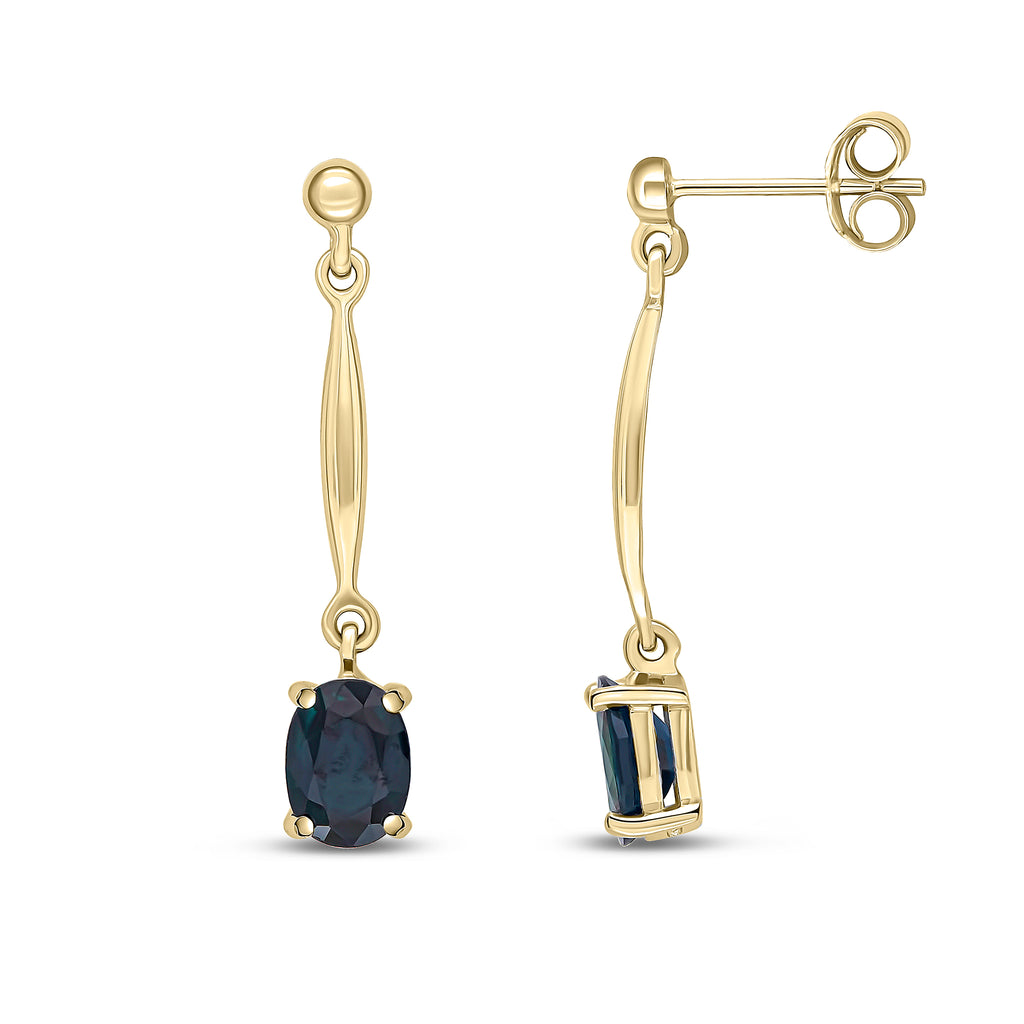 9CT Yellow Gold Oval Sapphire Claw Bar Drop Earrings 7x5mm